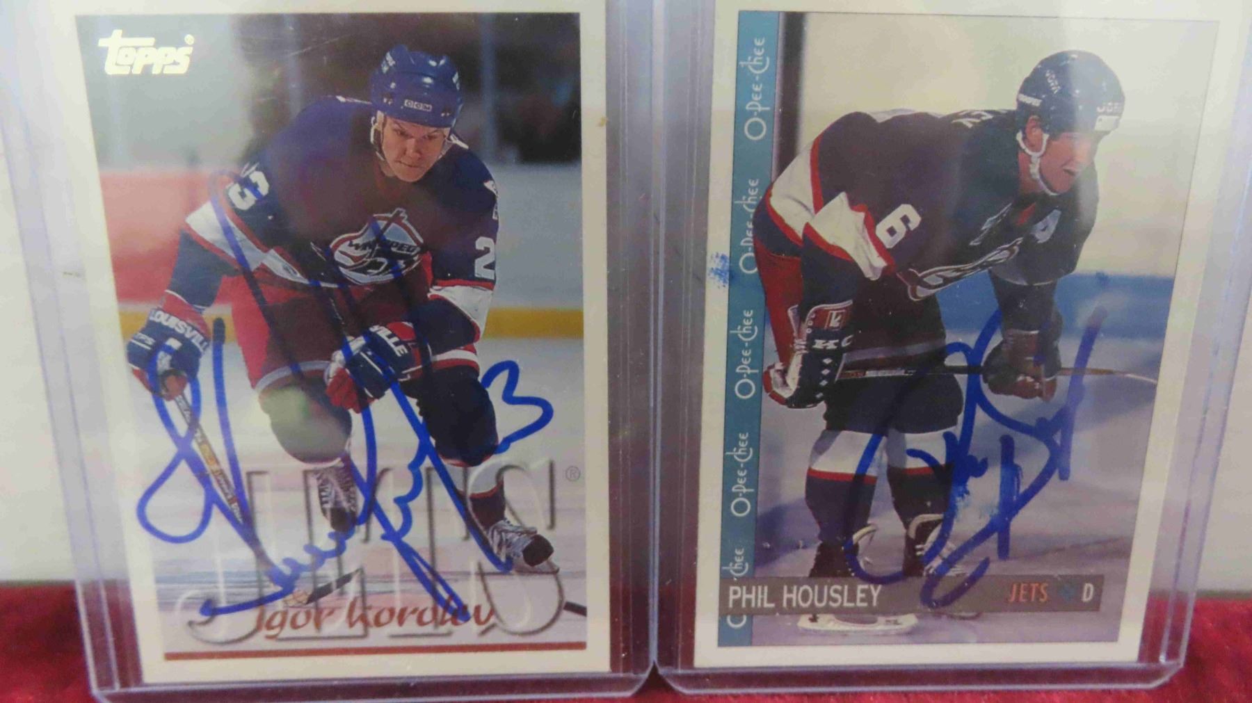 Winnipeg Jets 1.0 Autographed Cards : Housley, Steen, Tkachuk, Cheveldae, Draper, Zhamnov, Korolev, Emerson & Others