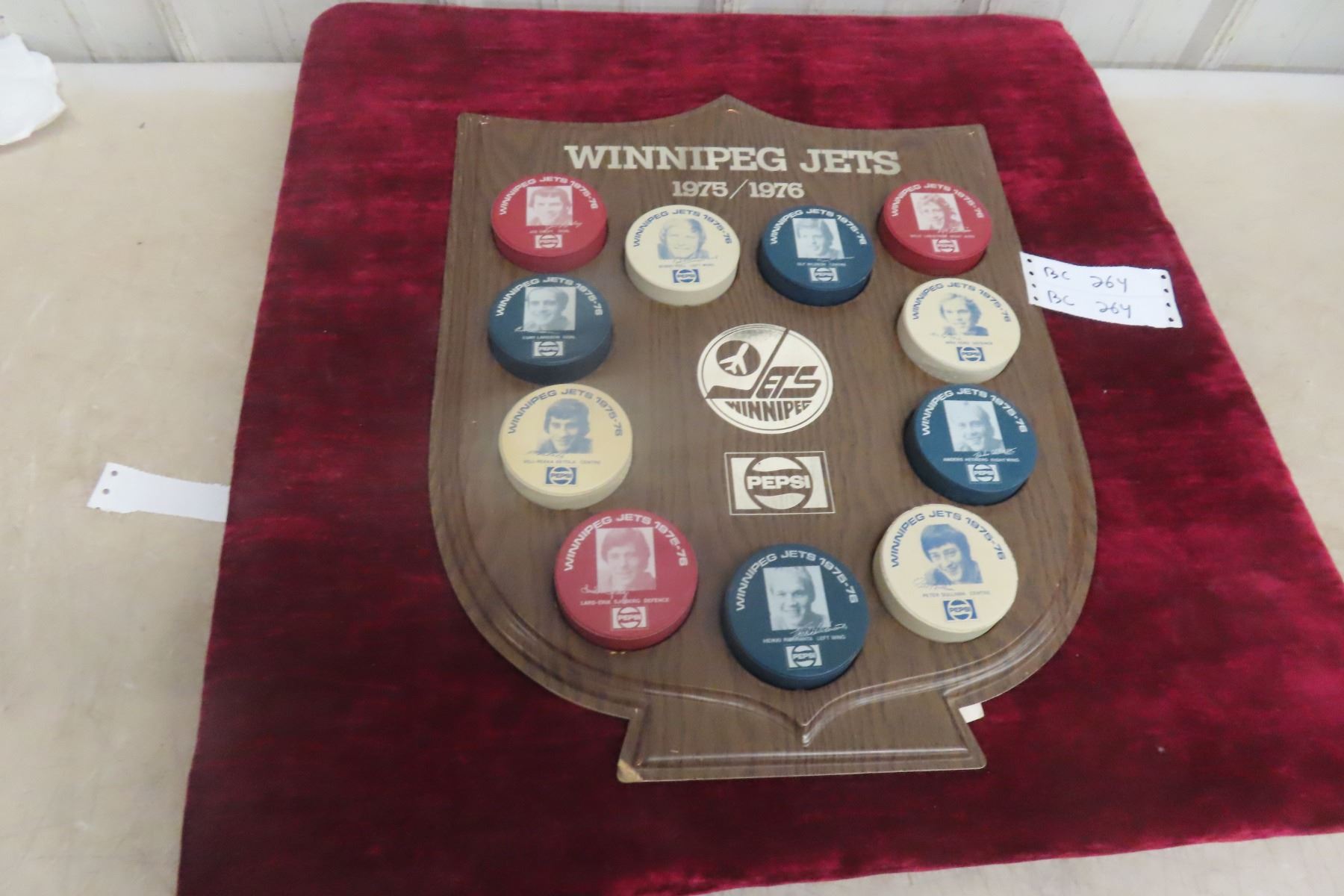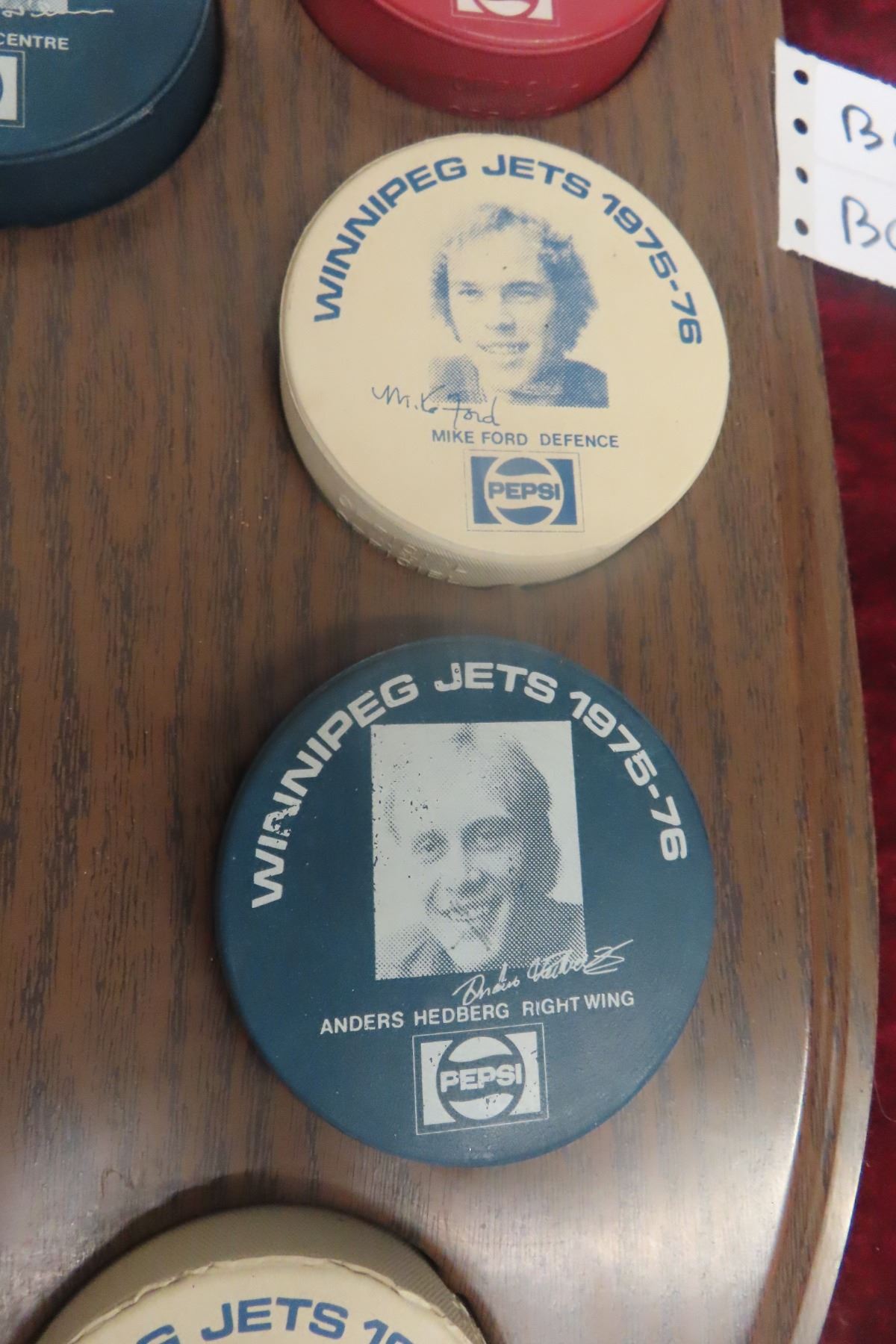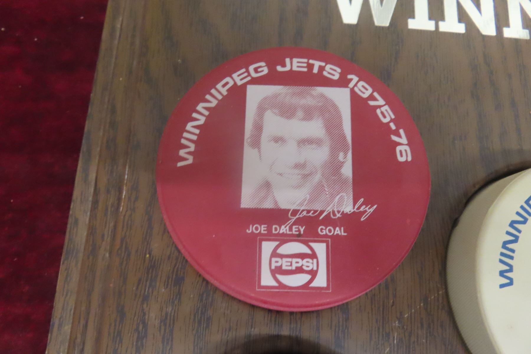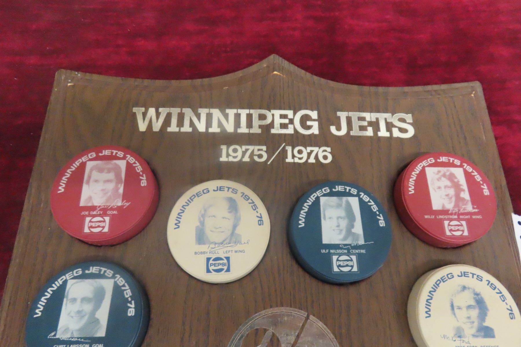 Winnipeg Jets 1975/76 Pepsi Promotion Shield with 11 Pucks (Bobby Hull, Joe Daley, and More), Rare