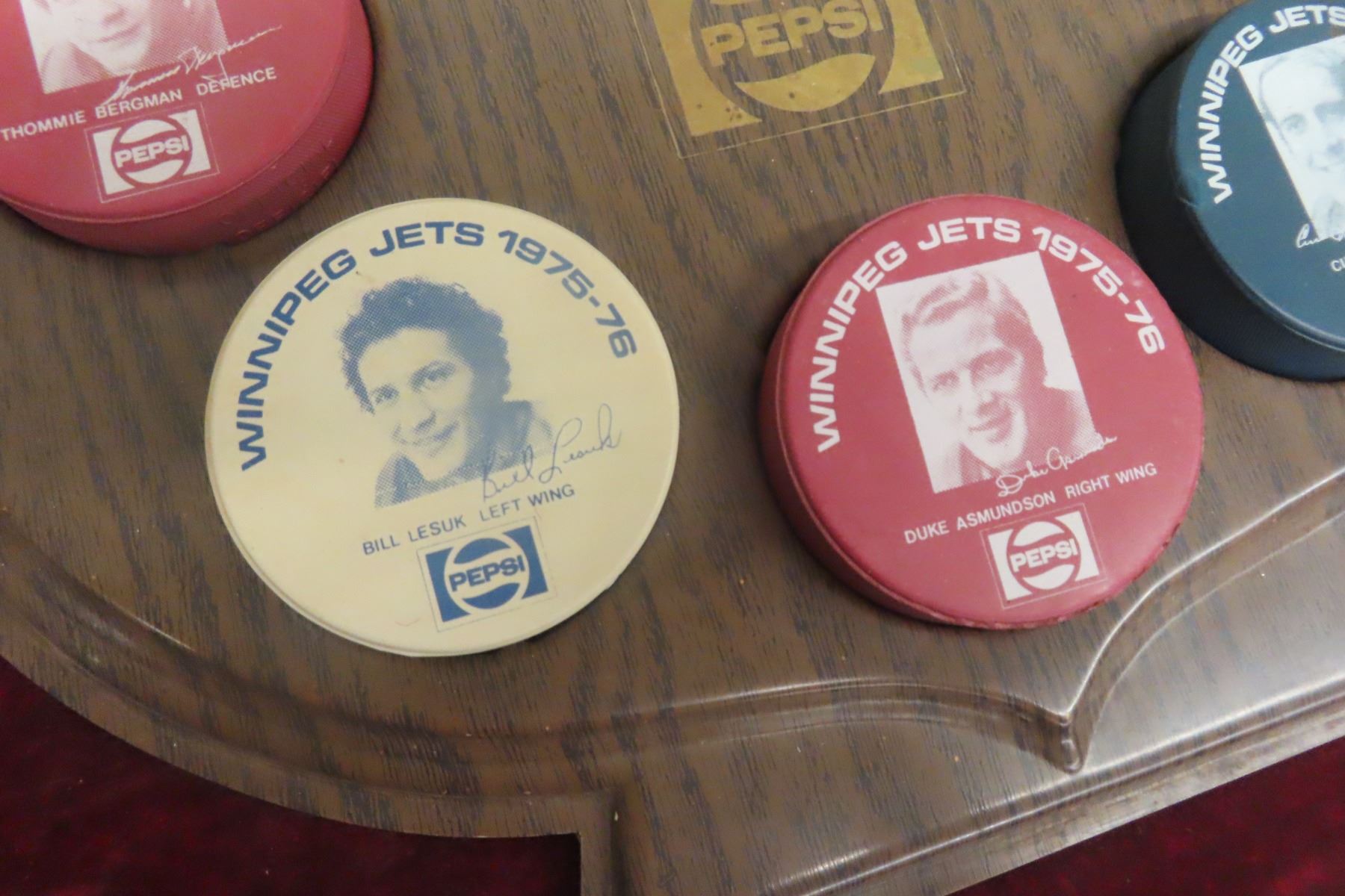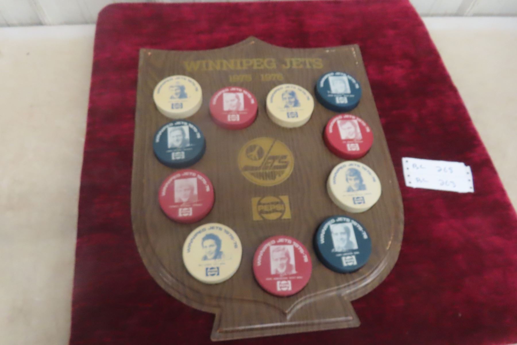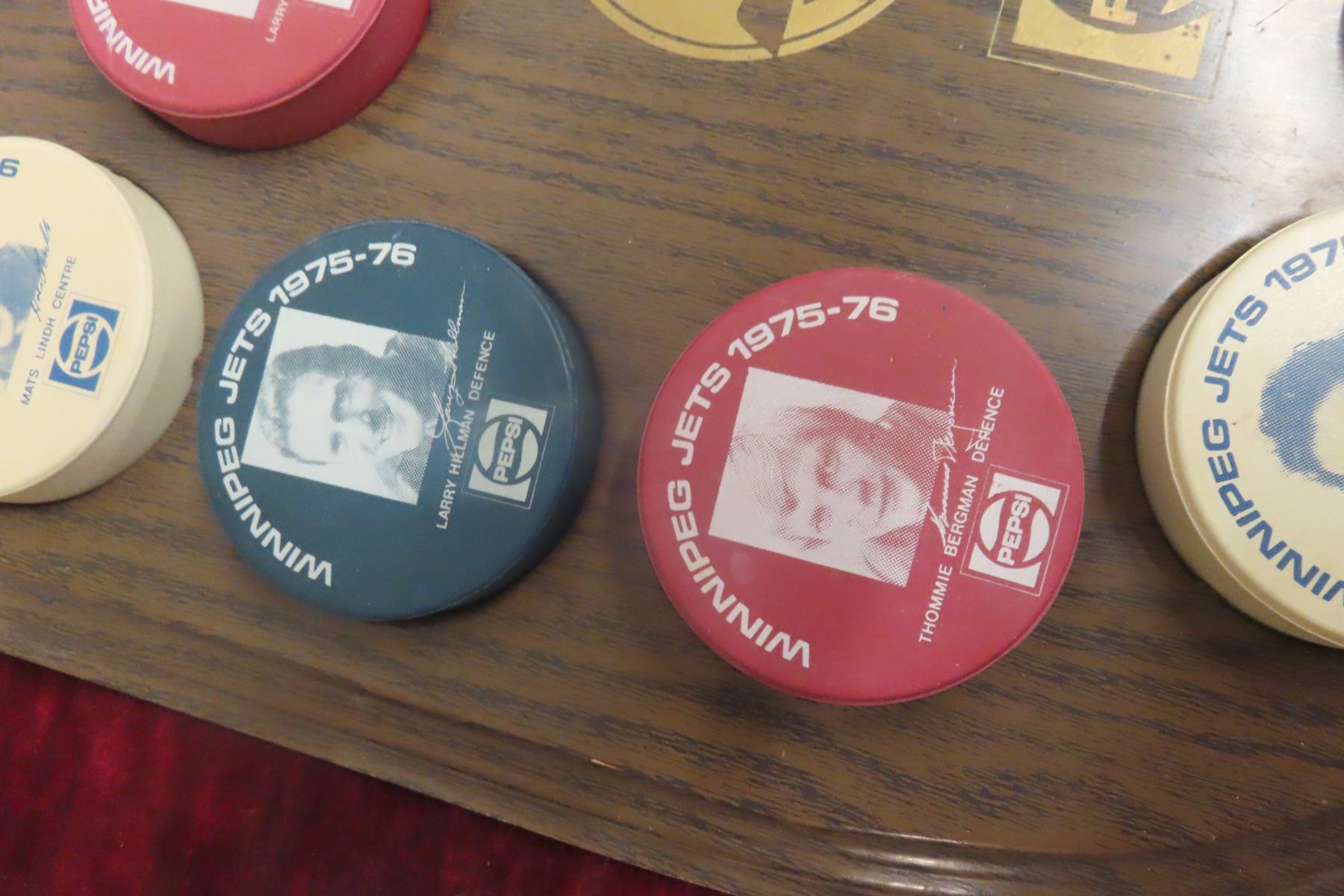 Winnipeg Jets 1975/76 Pepsi Promotion Shield with 11 Pucks, Rare Set, Hang or Easel Back