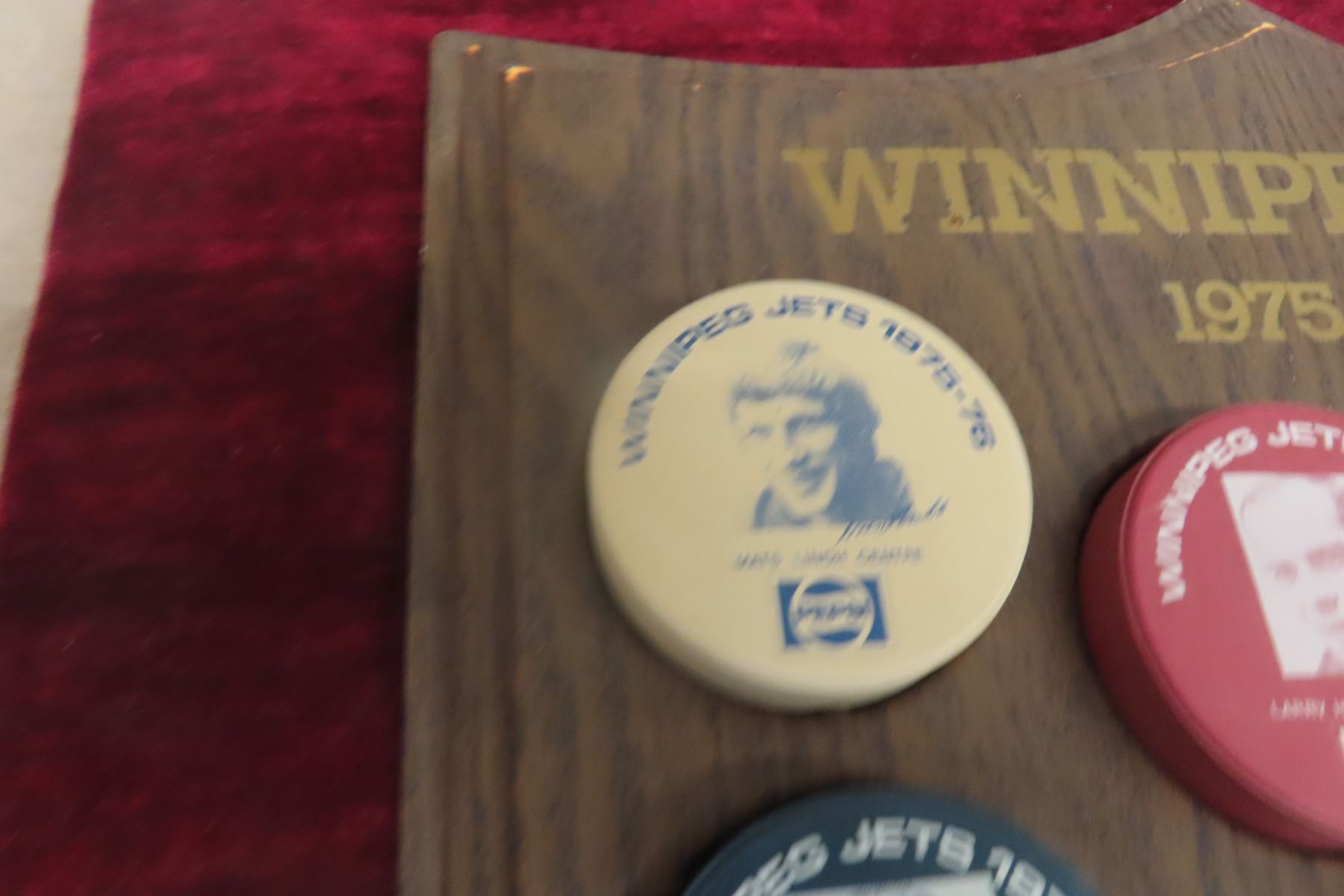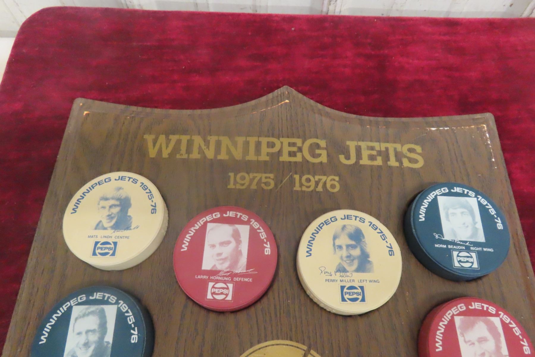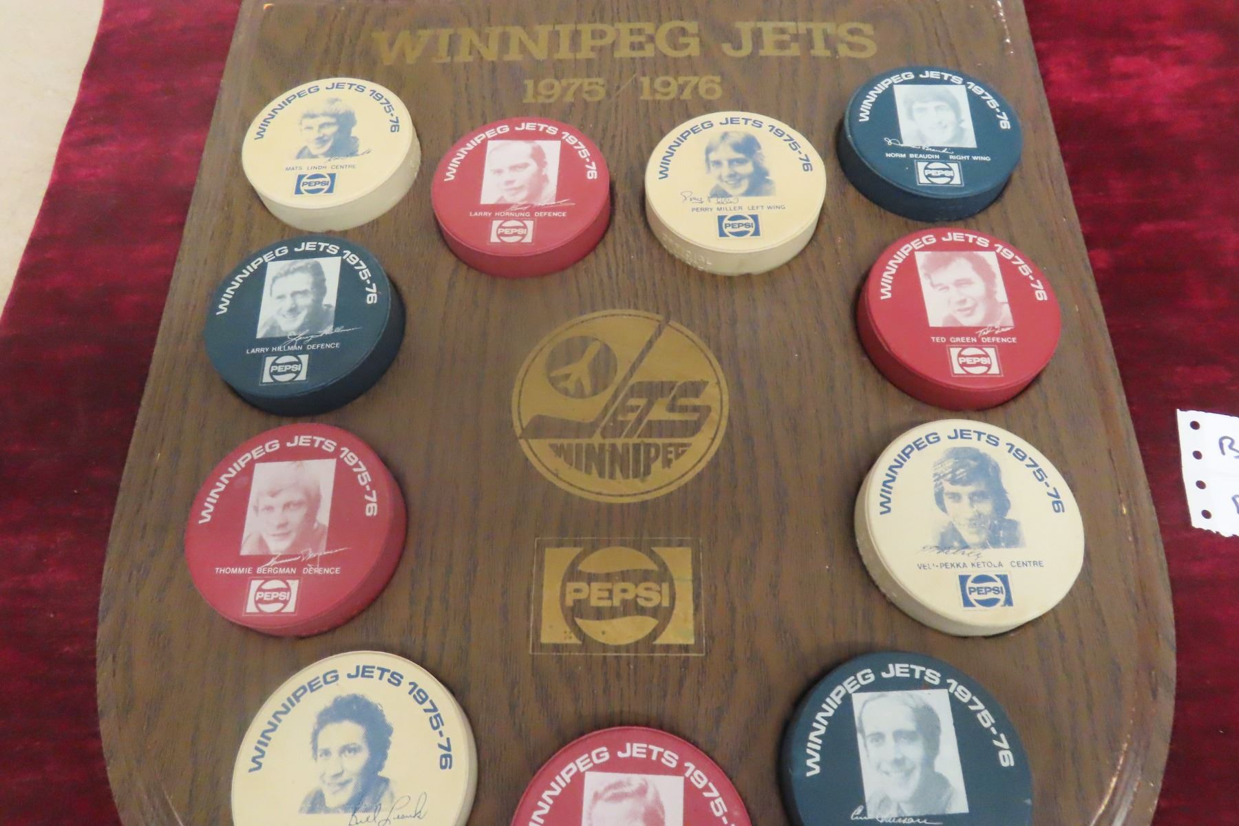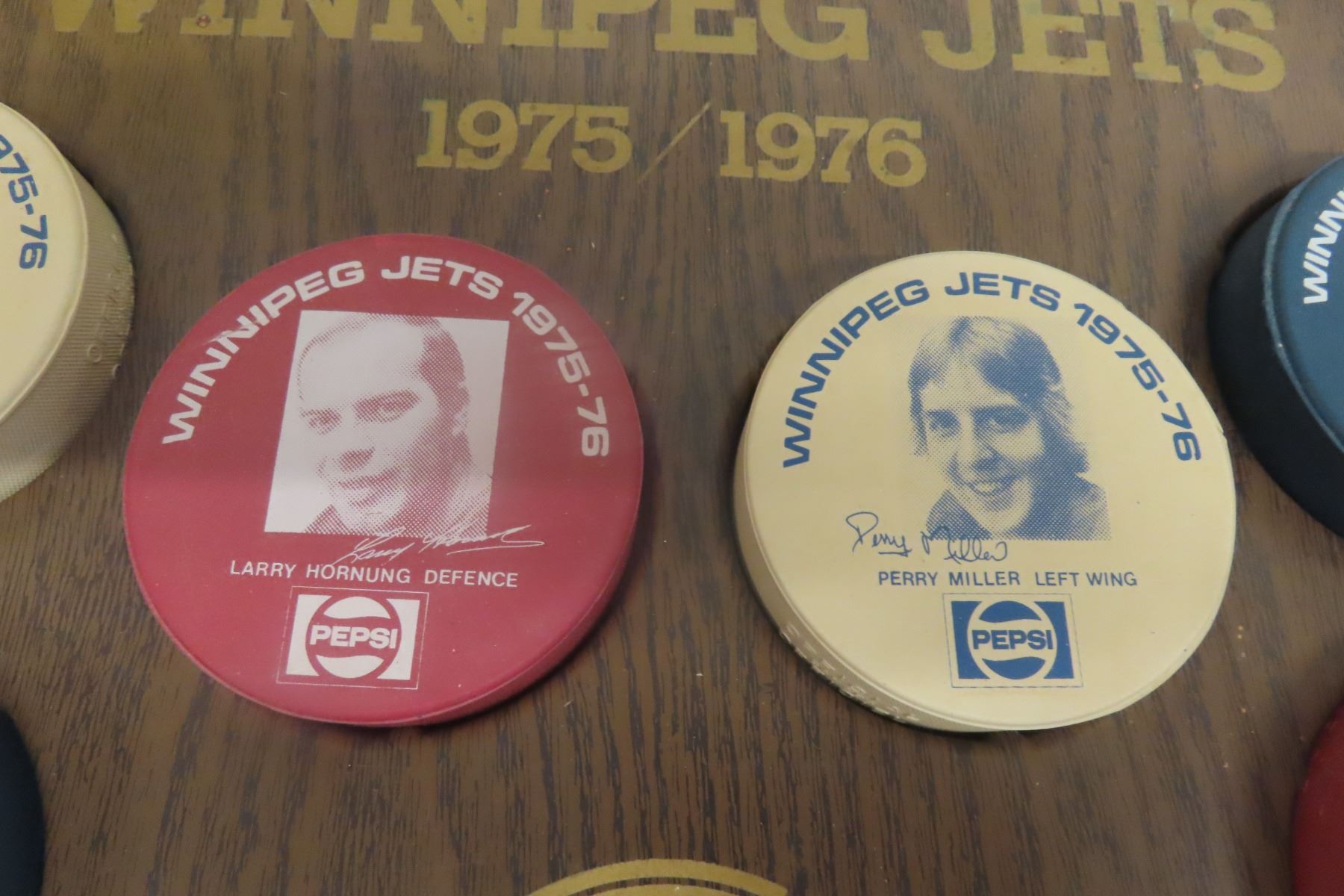 Winnipeg Jets 1975/76 Pepsi Promotion Shield with 11 Pucks, Rare Set, Hang or Easel Back