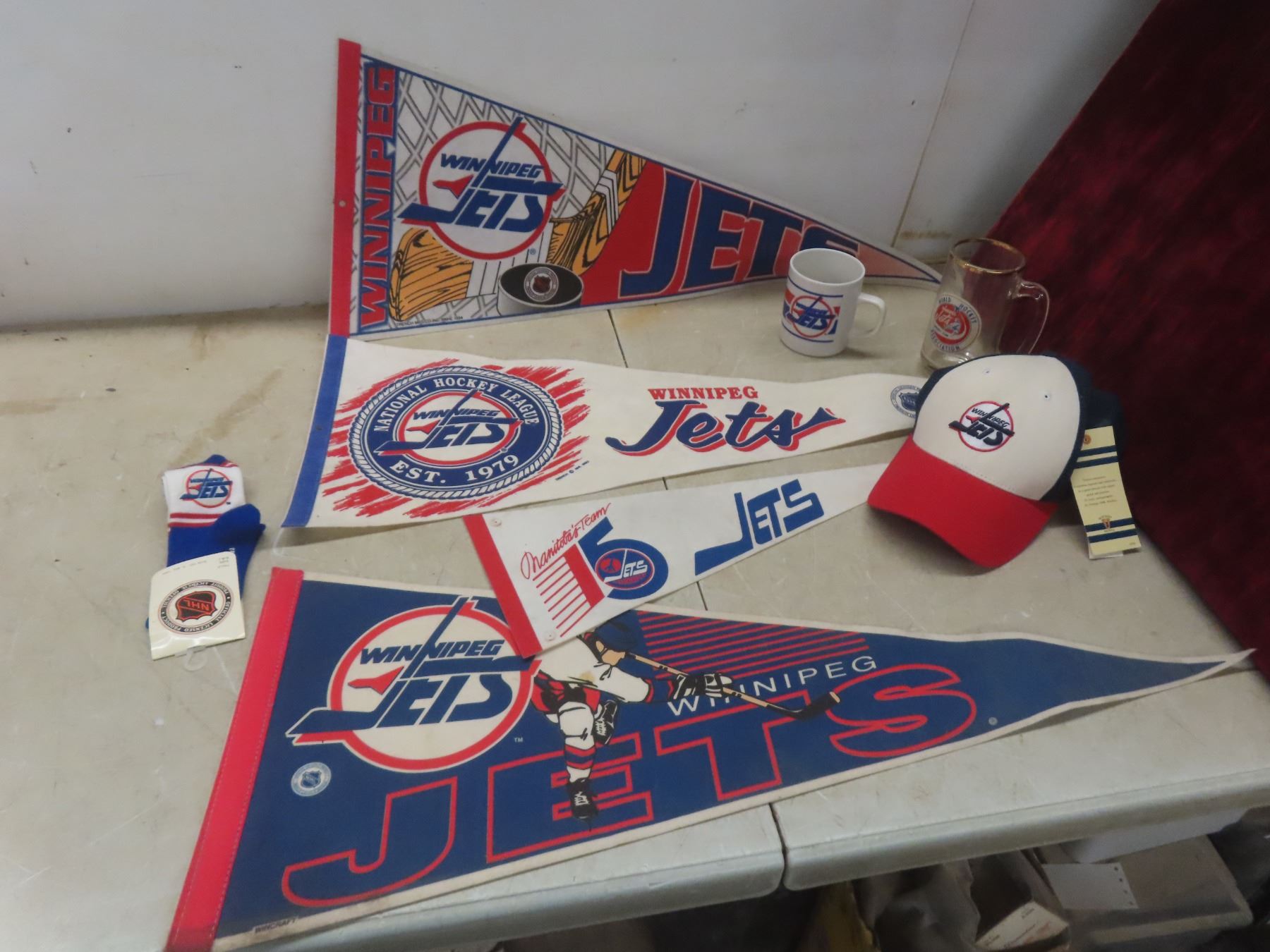 Winnipeg Jets 4 Pennants (1970s–1990s), Coffee Mug, Beer Mug, Ball Cap