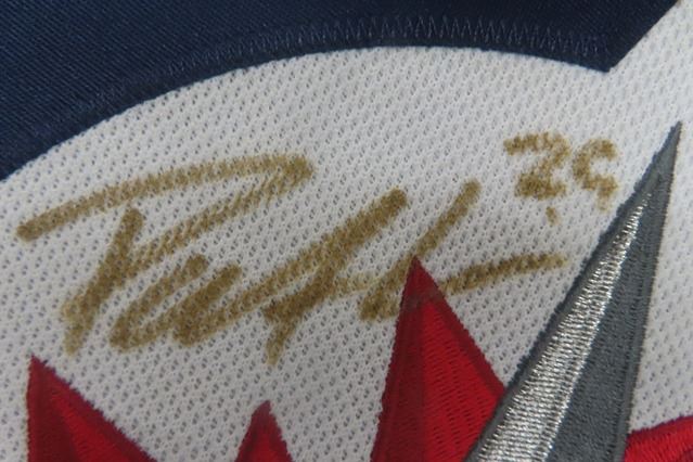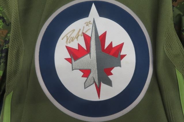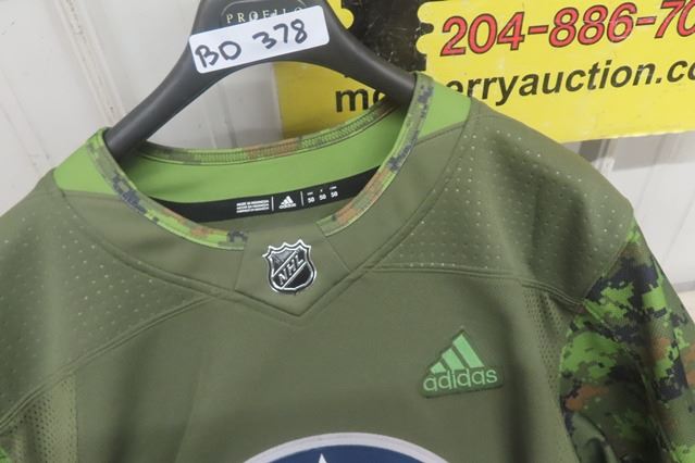 Winnipeg Jets Authentic Pro Patrick Laine Autographed Sz 50 Military Night Jersey with Fight Strap- Adidas