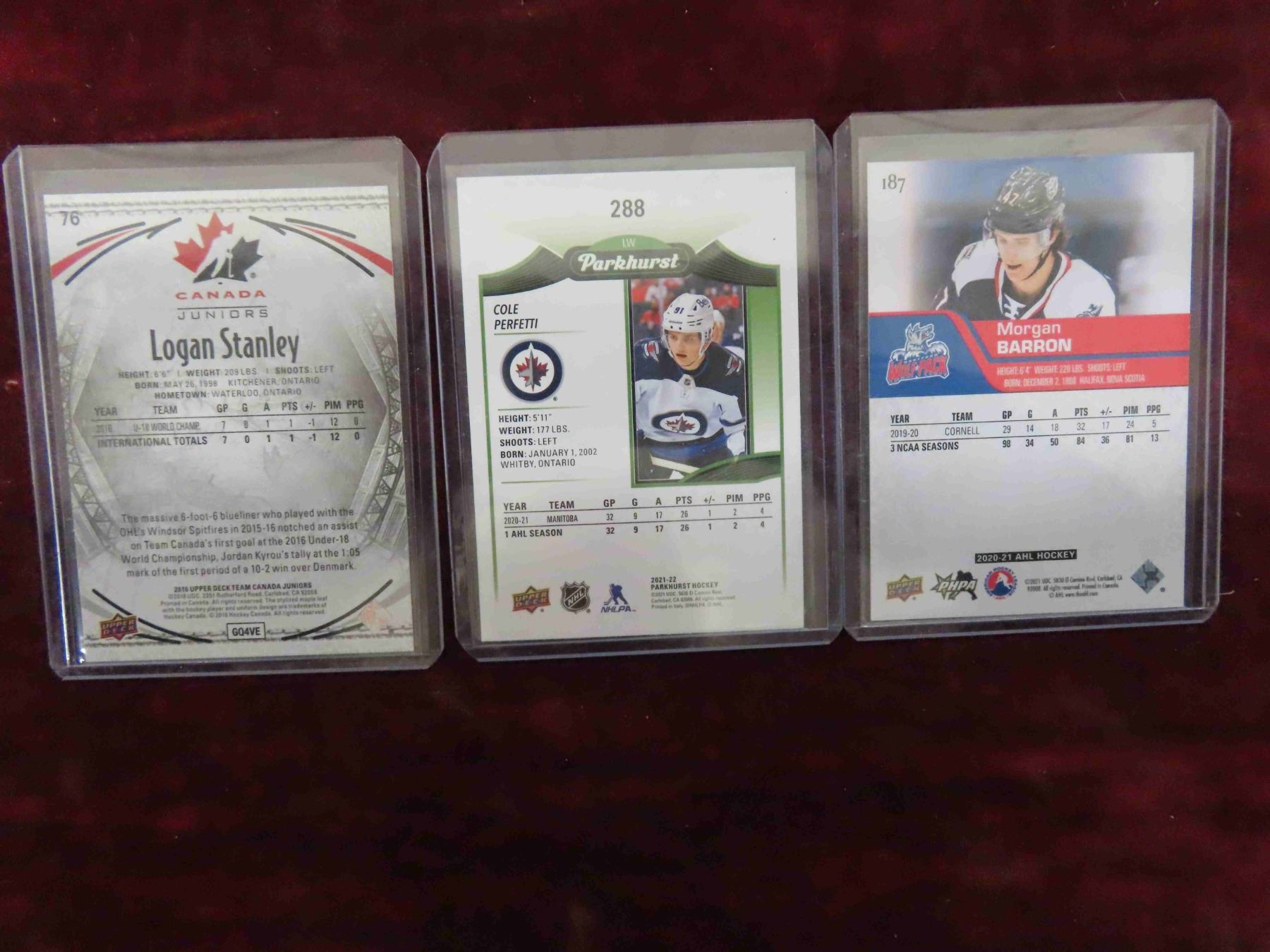 Winnipeg Jets Autographed Hockey Card Lot : Cole Perfetti , Logan Stanley , Morgan Barron