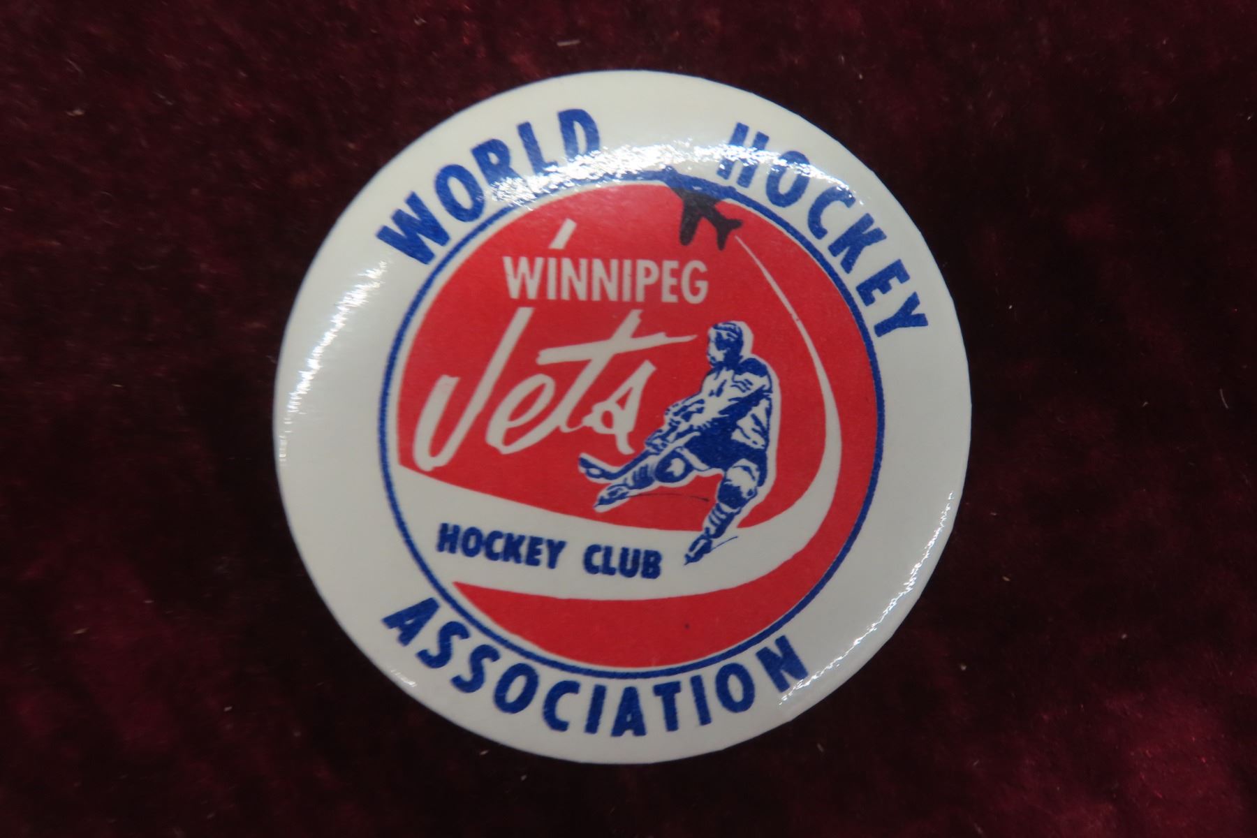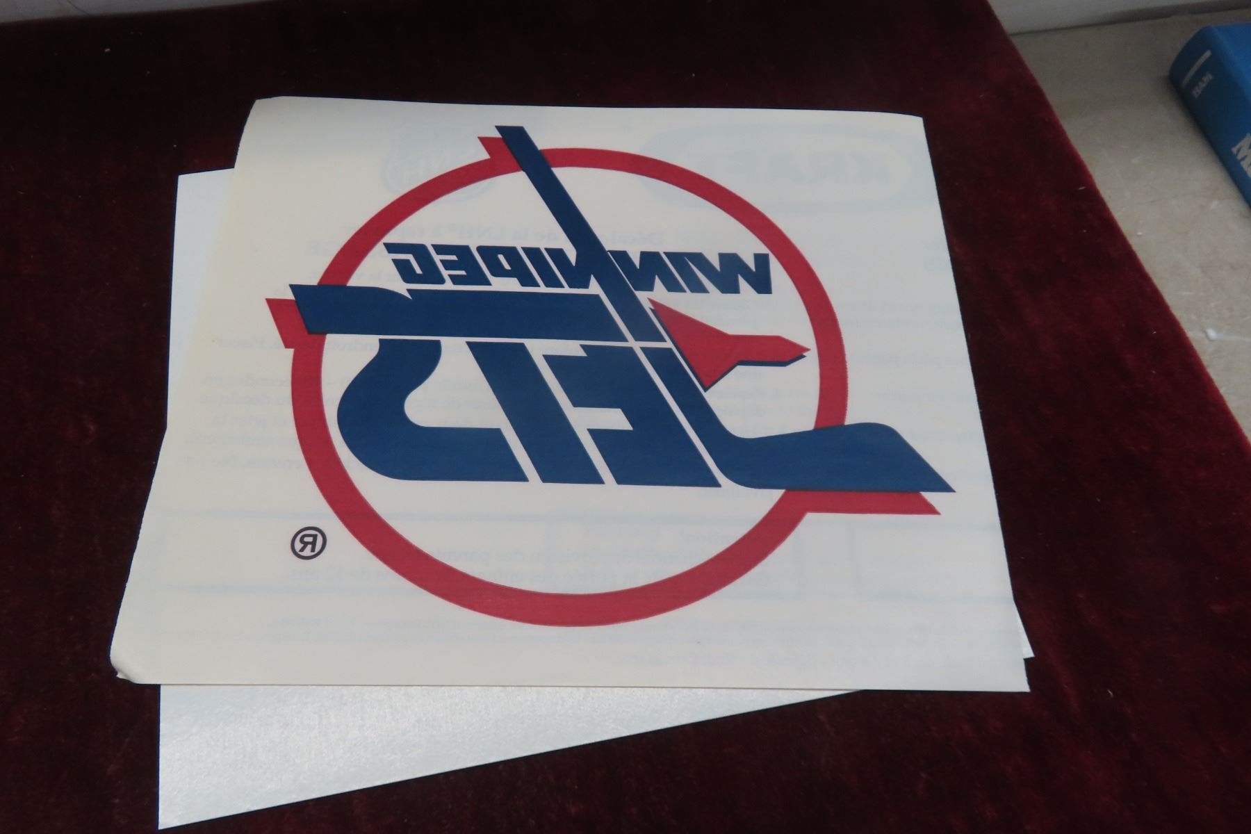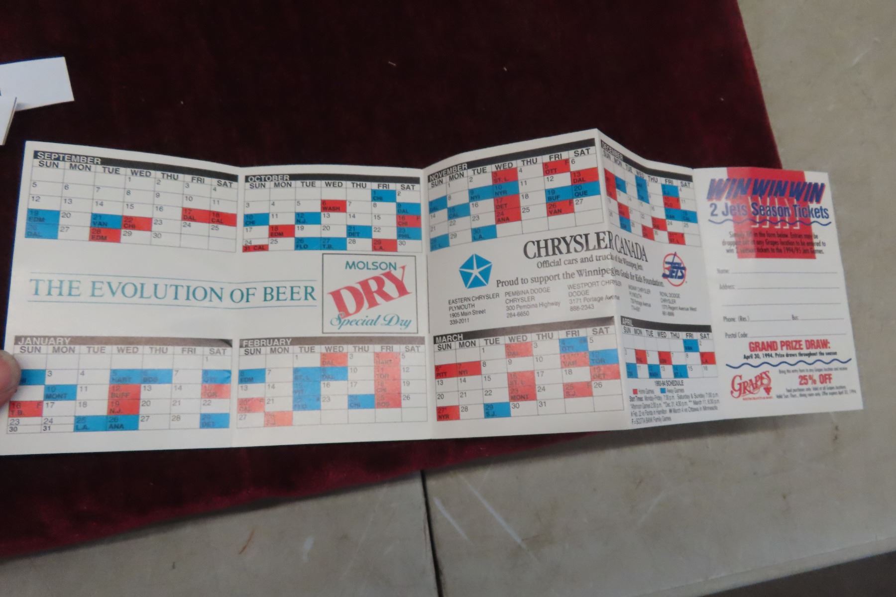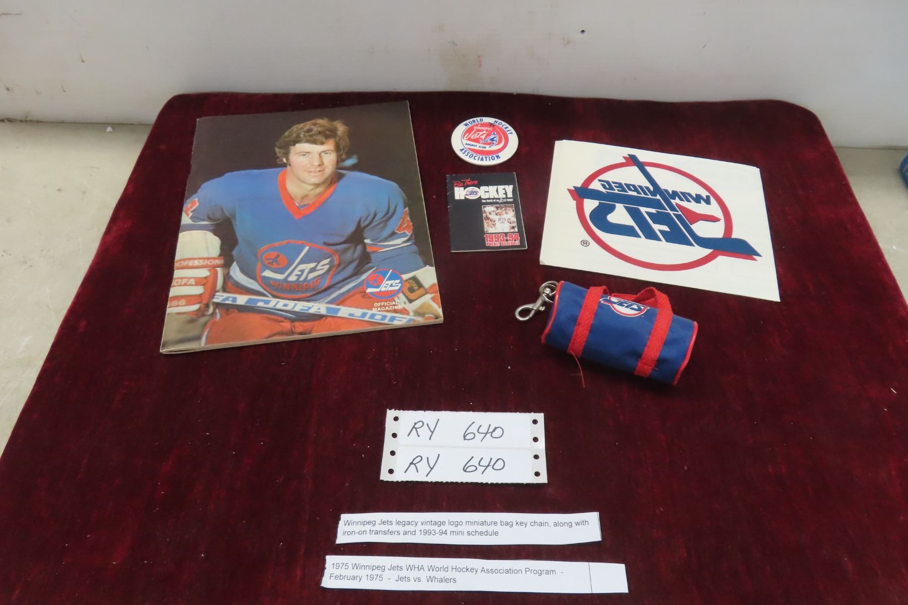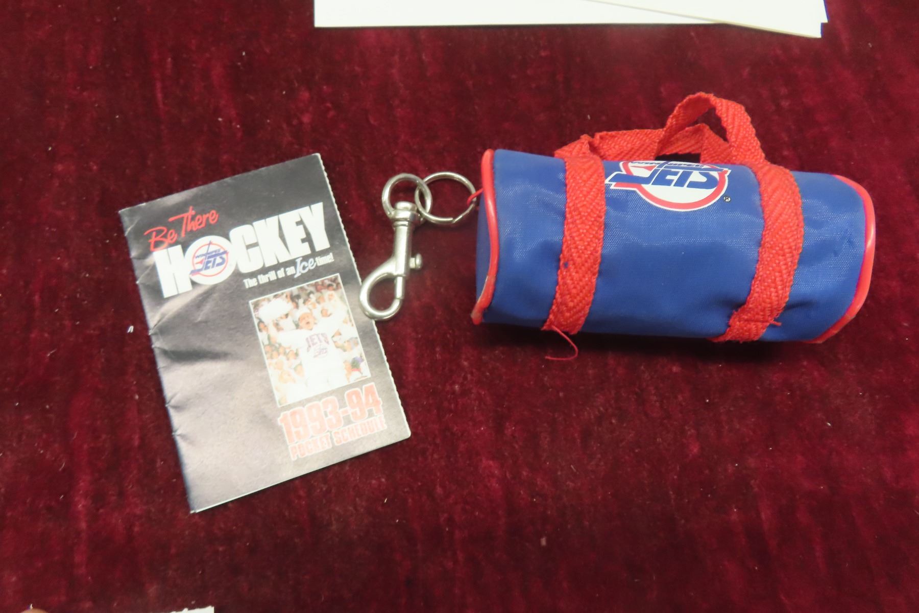 Winnipeg Jets Legacy Vintage Logo Miniature Bag Key Chain, Iron on Transfers, 1993-1994 Mini Schedule + 1975 World Hockey Association Program Feb 1975 Jets Vs Whalers