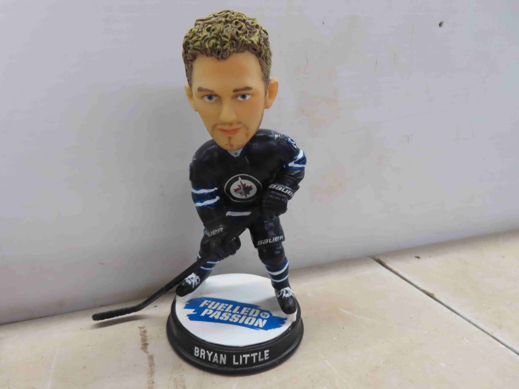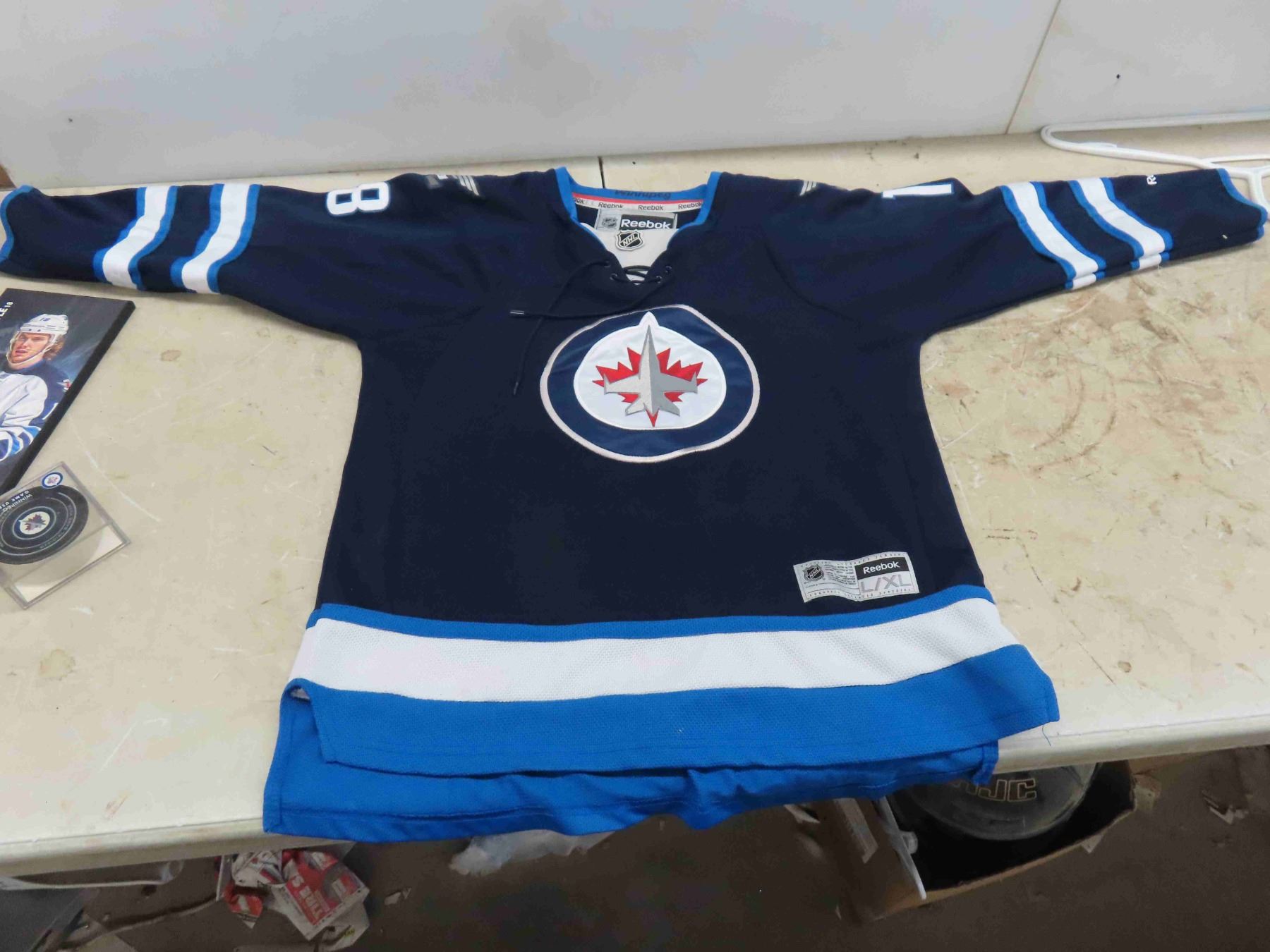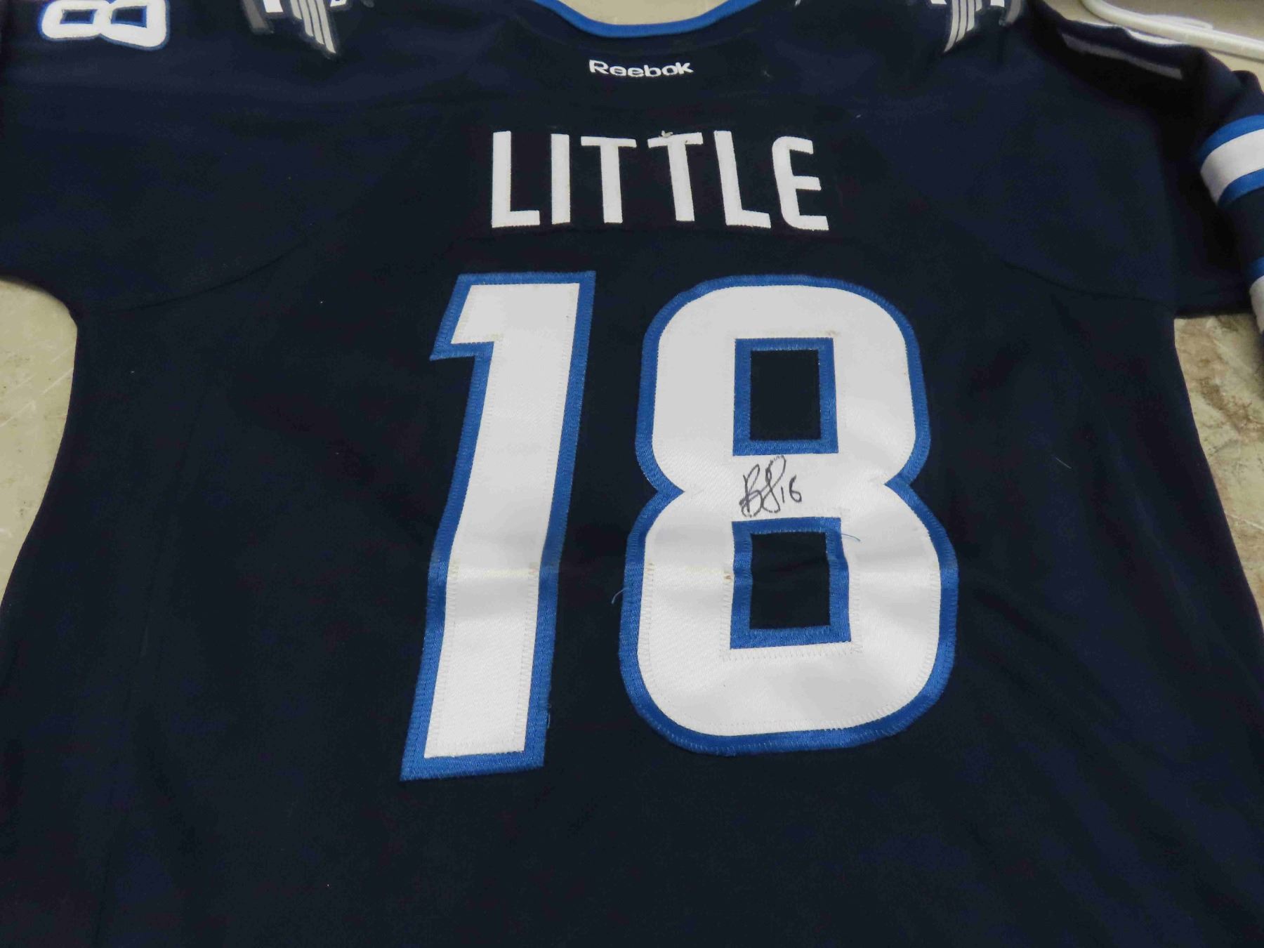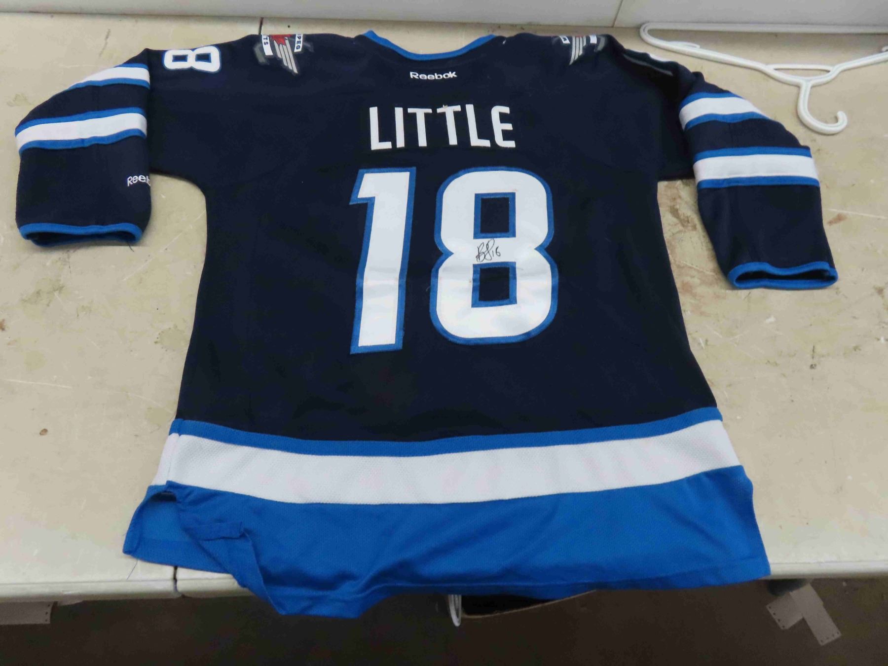 Winnipeg Jets Signed Jersey #18 Size Youth L/XL , Bryan Little Bobblehead,