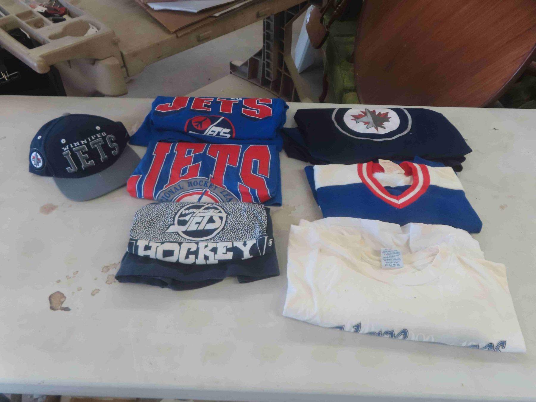 Winnipeg Jets T-Shirts Size M,Lg, 2 XL, Jets Ball Cap, Jacket Size Sm, 3 Crying Towels