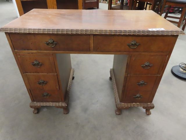 Wood 7 Drawer Desk w Pie Crust Carving 30"H 40"W 20"D