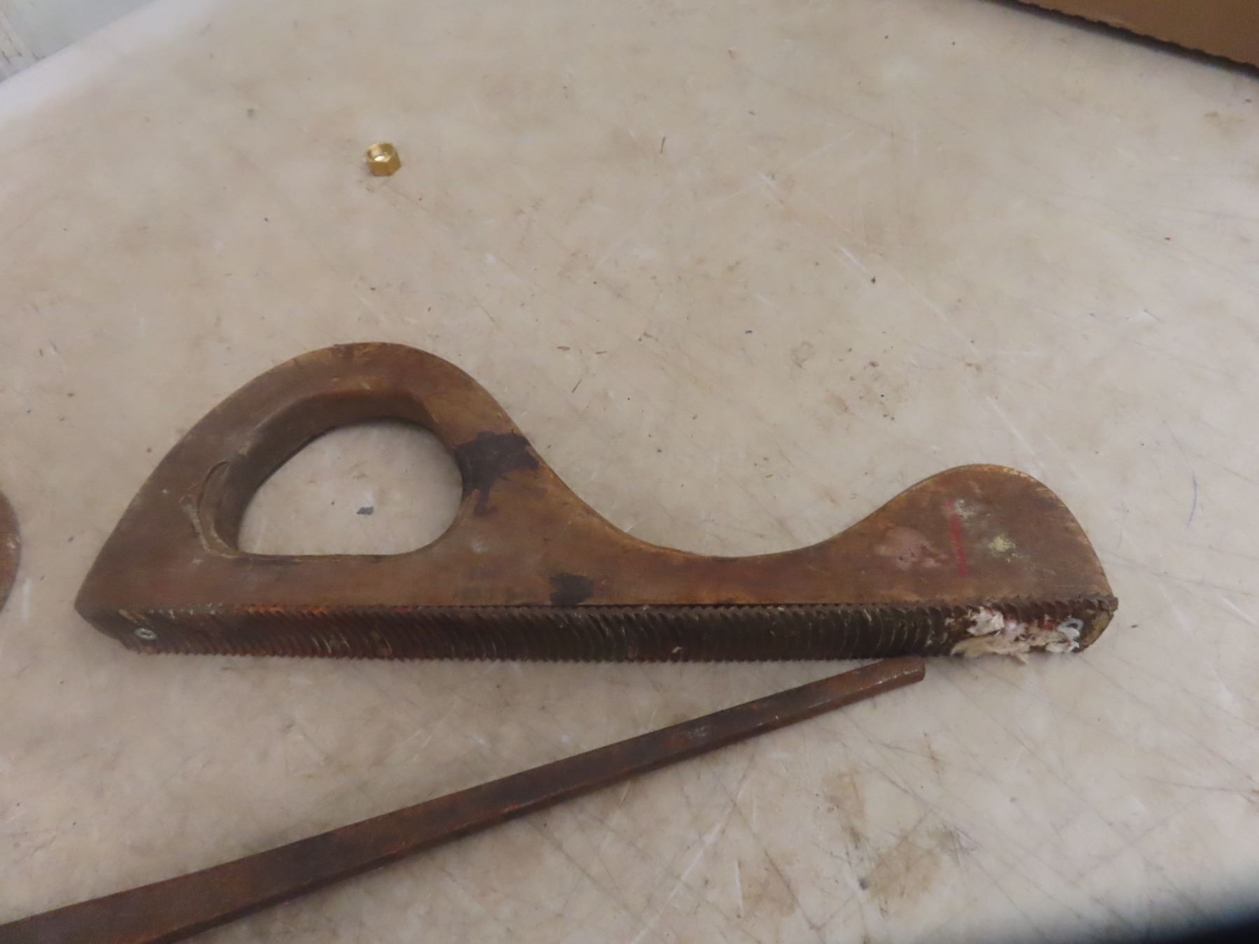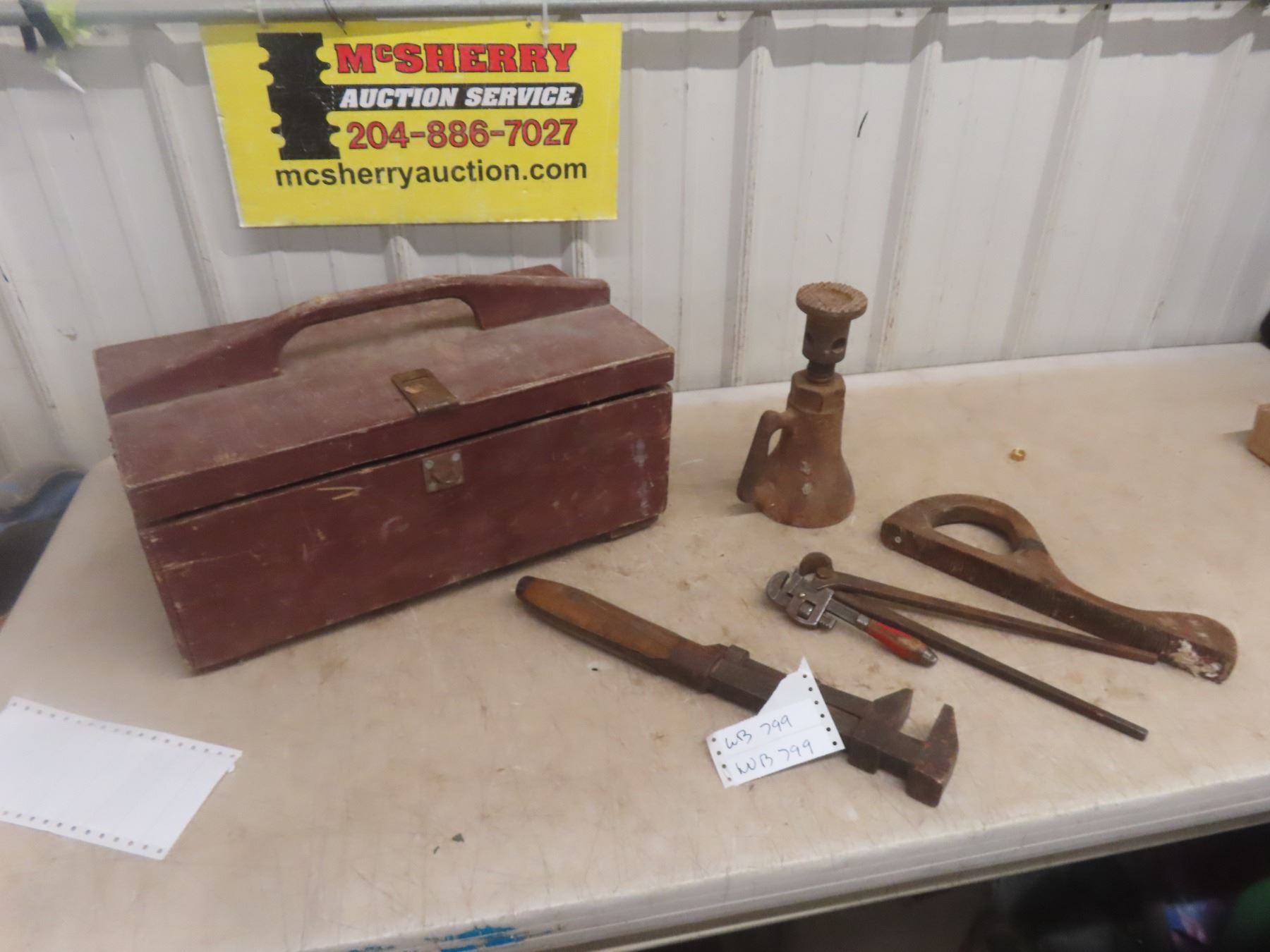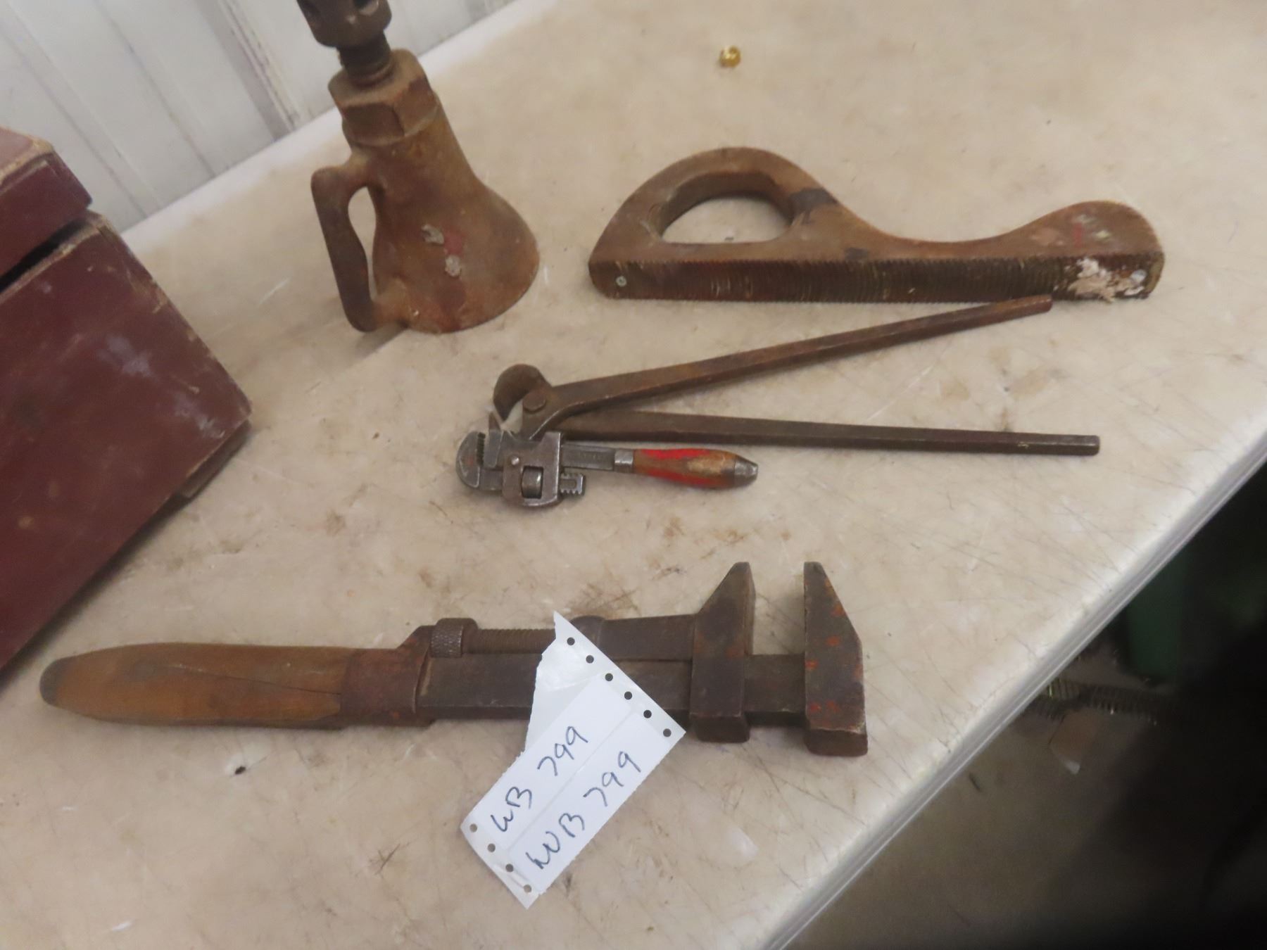 Wood Box Building Jack, Old Pipe Wrench, Hoof Trimmer
