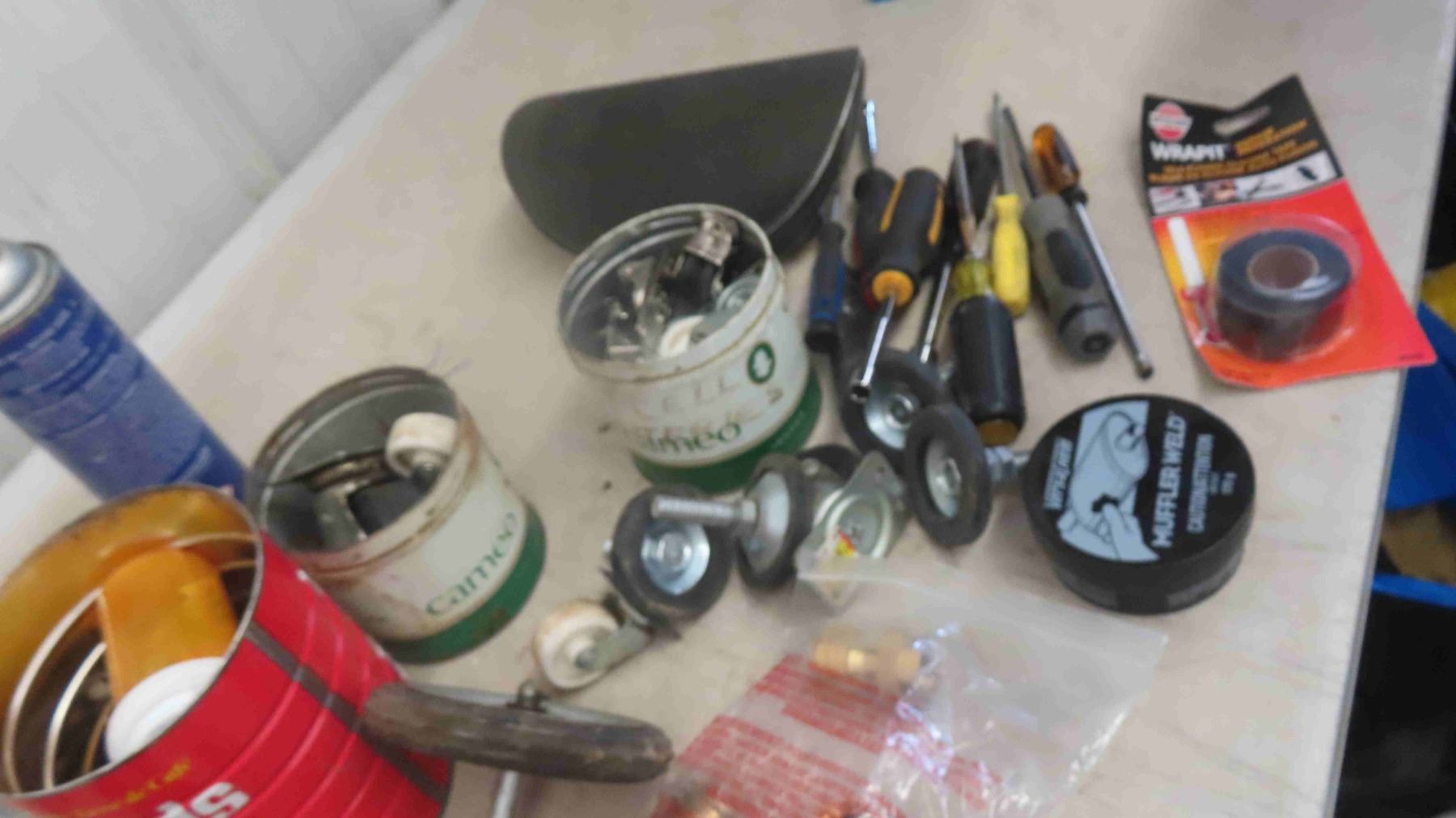 Wood Box with Hinged Lid , Chain , Screwdriver , WD40 , Nails, Plus