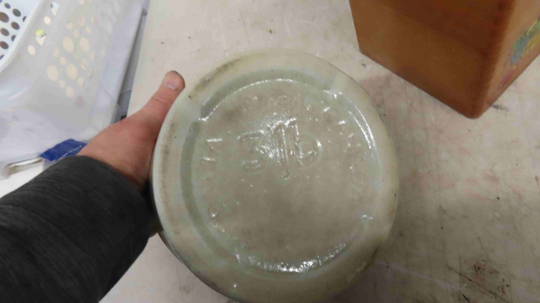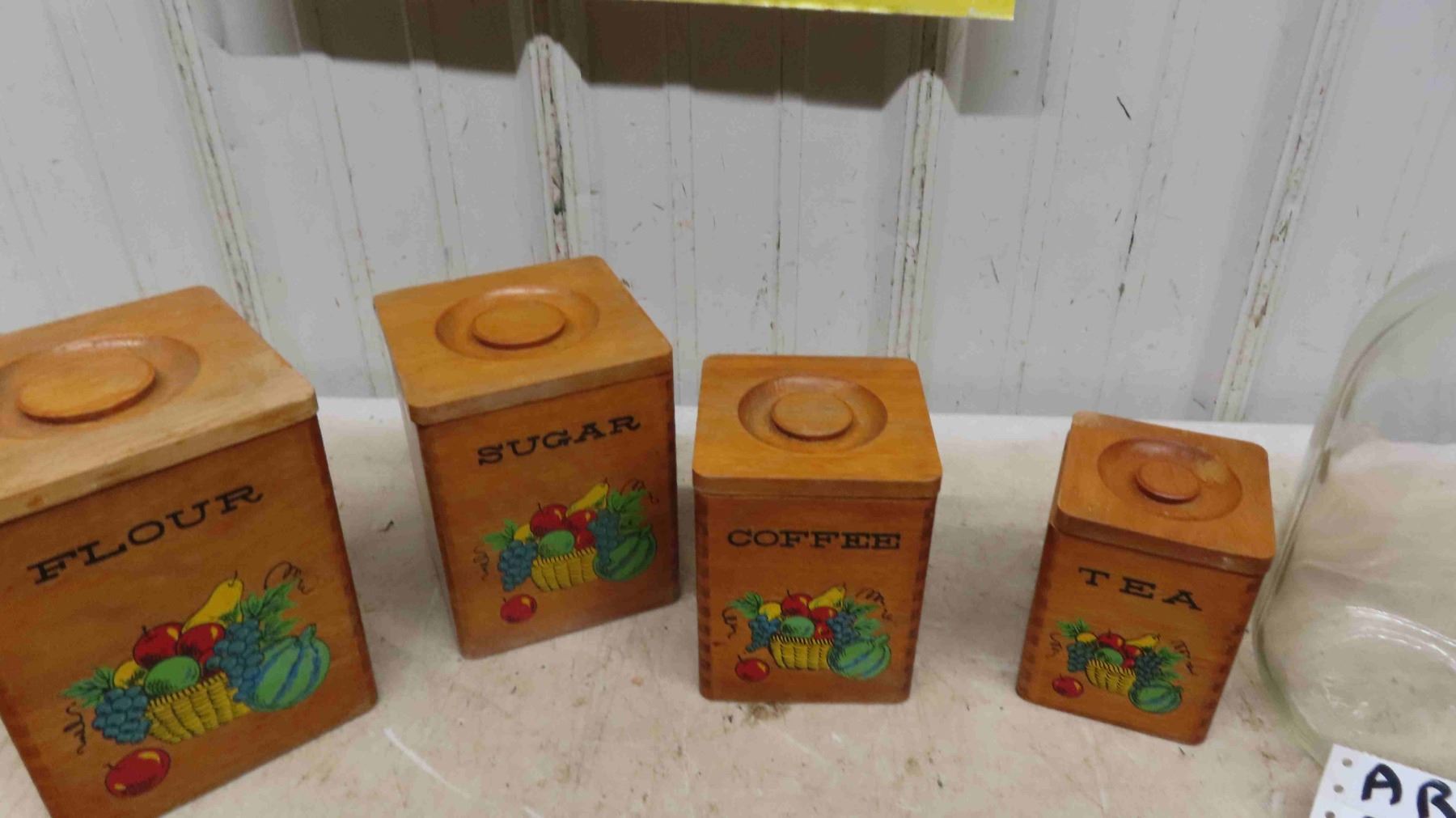 Wood Canister Set , Medalta 1/2 Gal Butter Crock , Vintage