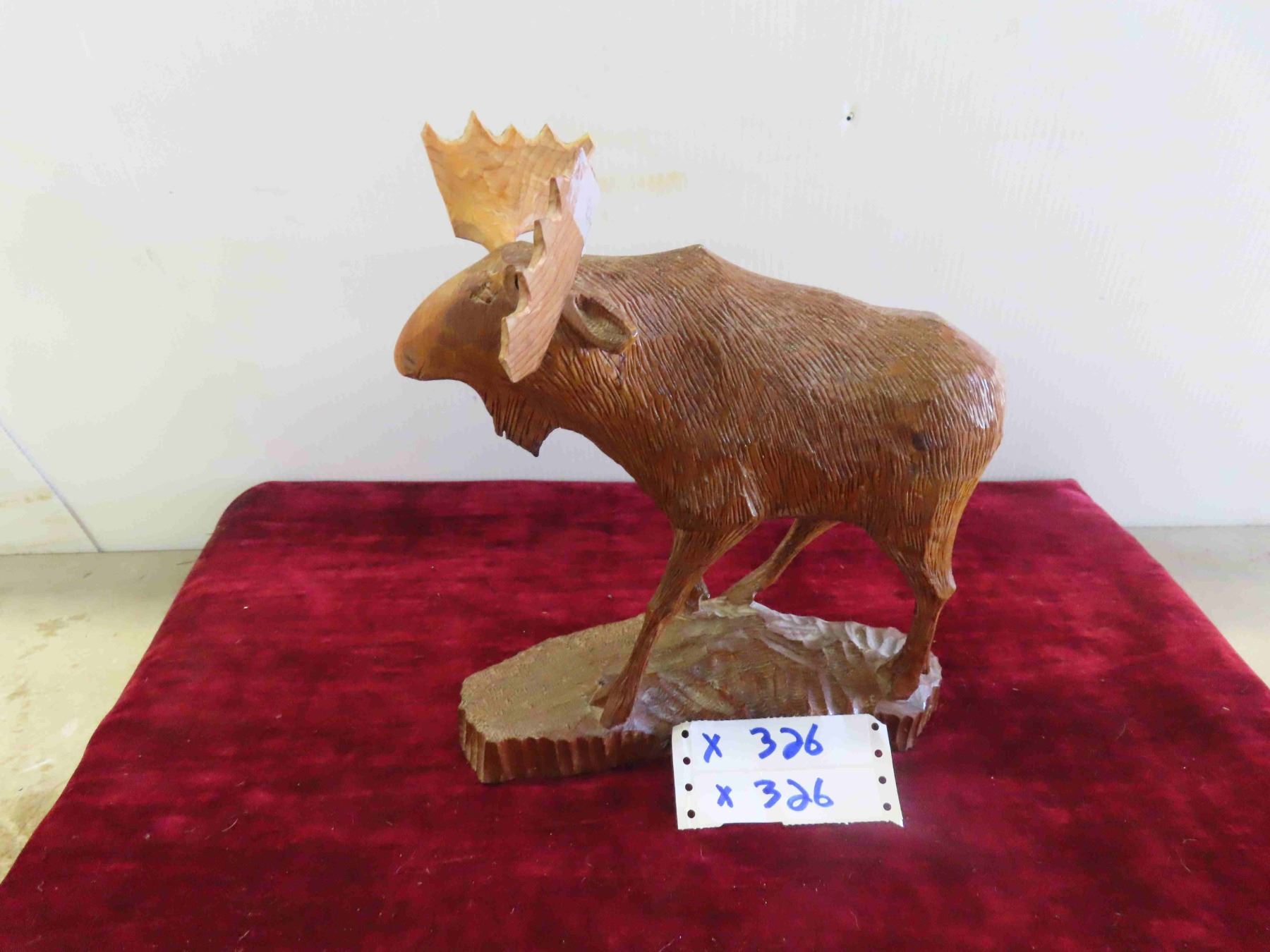 Wood Carved Moose 11'' x 12'' - 1 Antler is Cracked