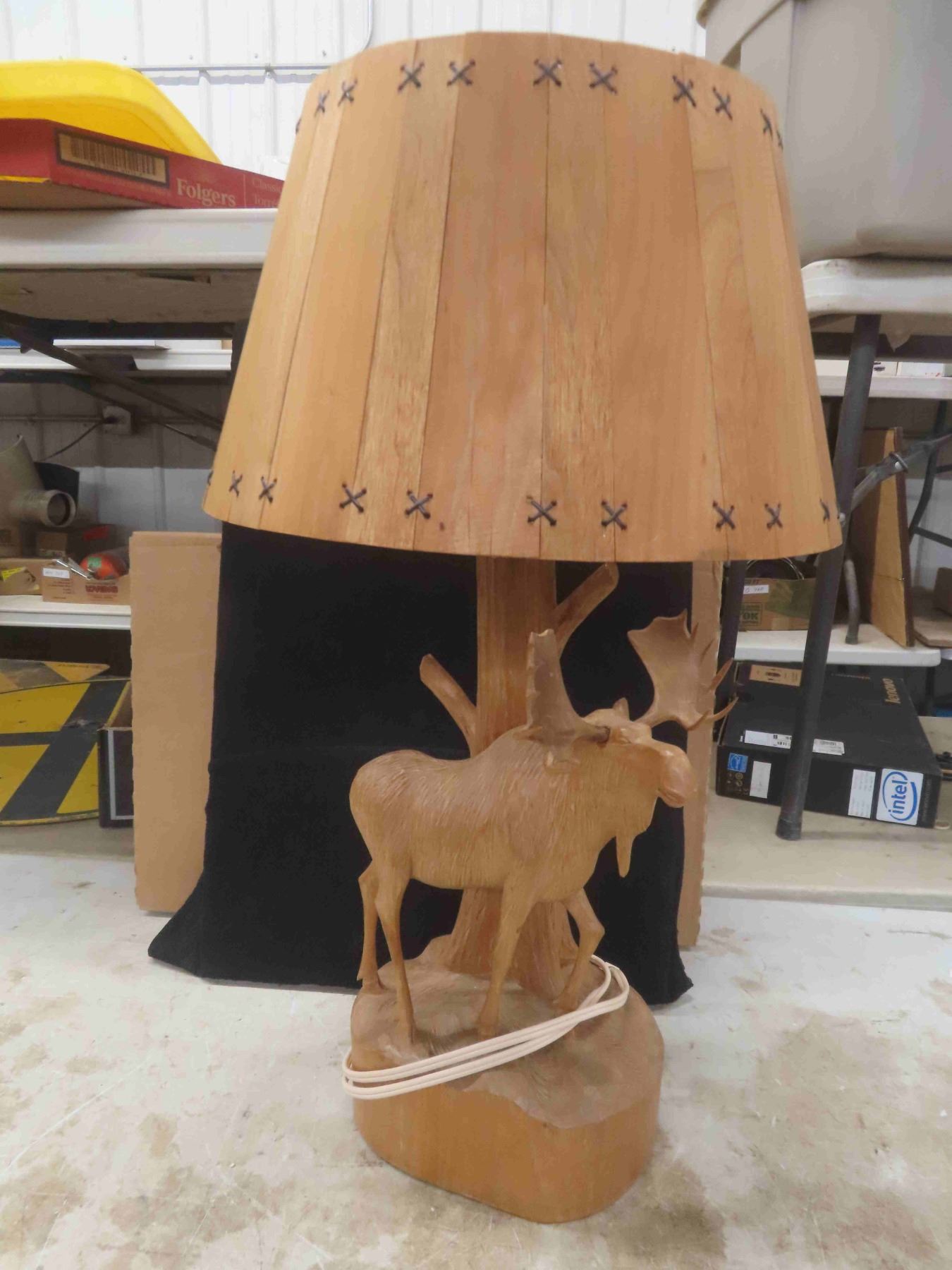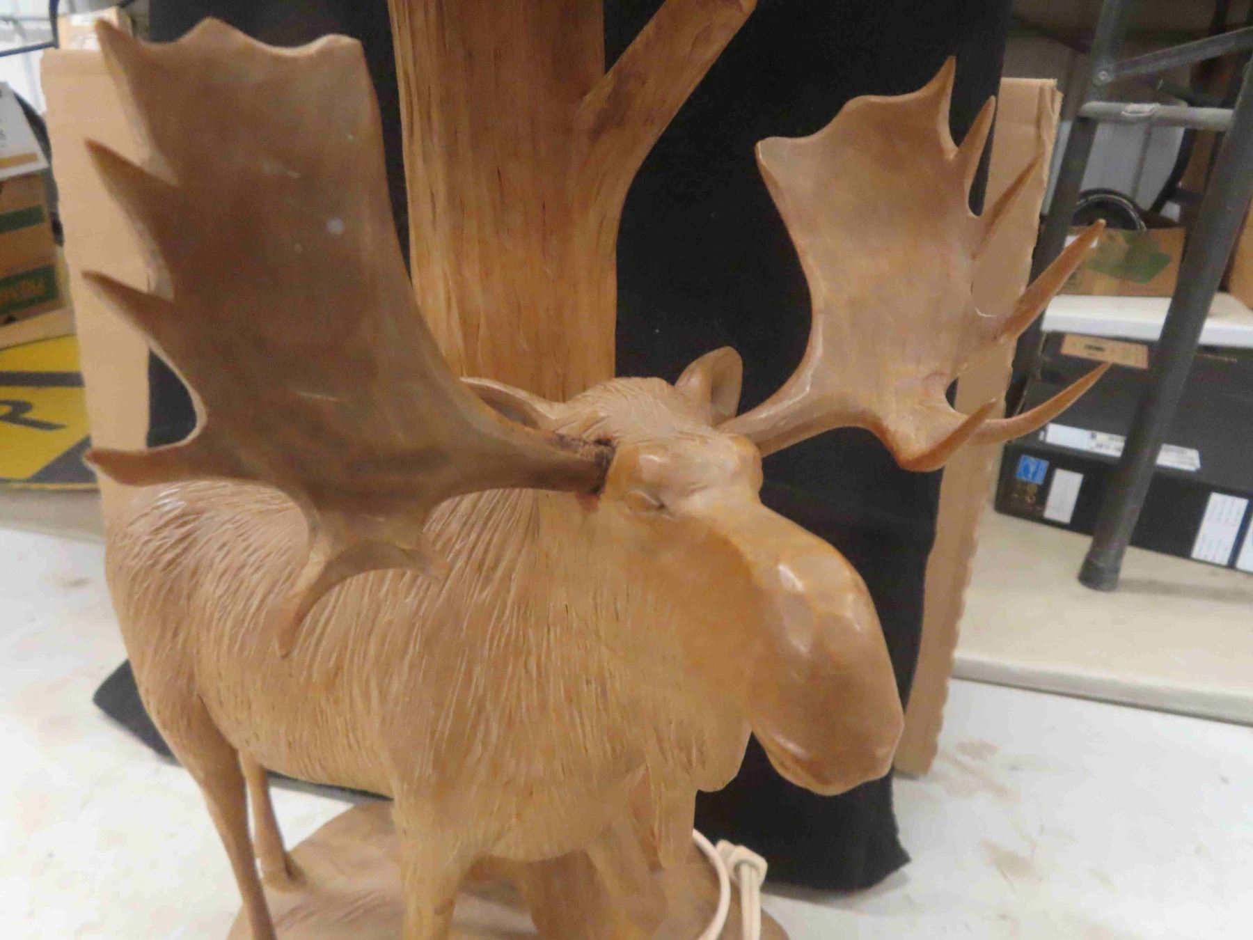 Wood Carved Moose Lamp with Matching Shade 16" x 28.5"