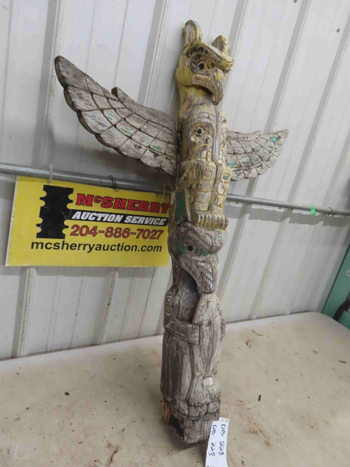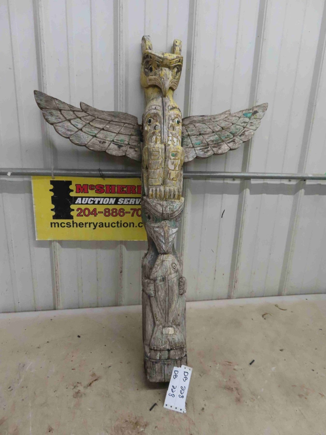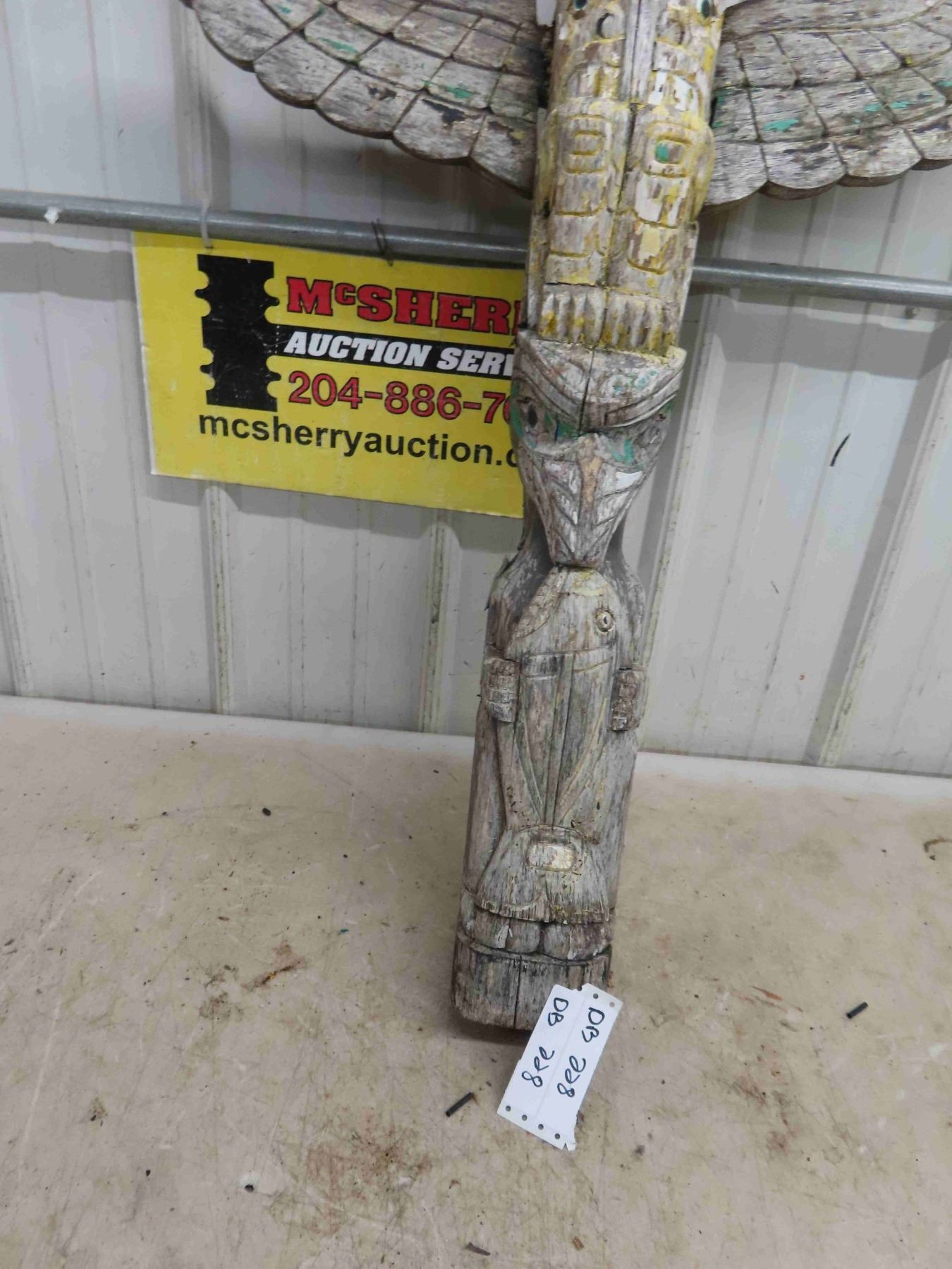Wood Carved Totem Pole 39'' H x 29'' Wing Span