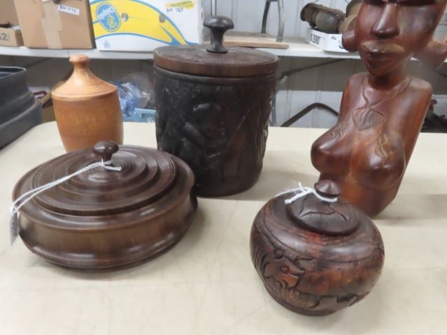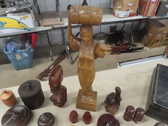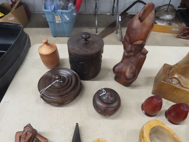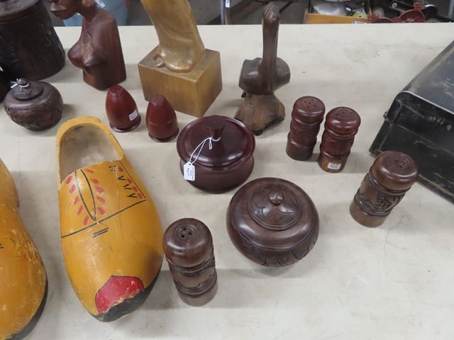 Wood Carvings: Bowls, Figures, Salt + Pepper Shakers