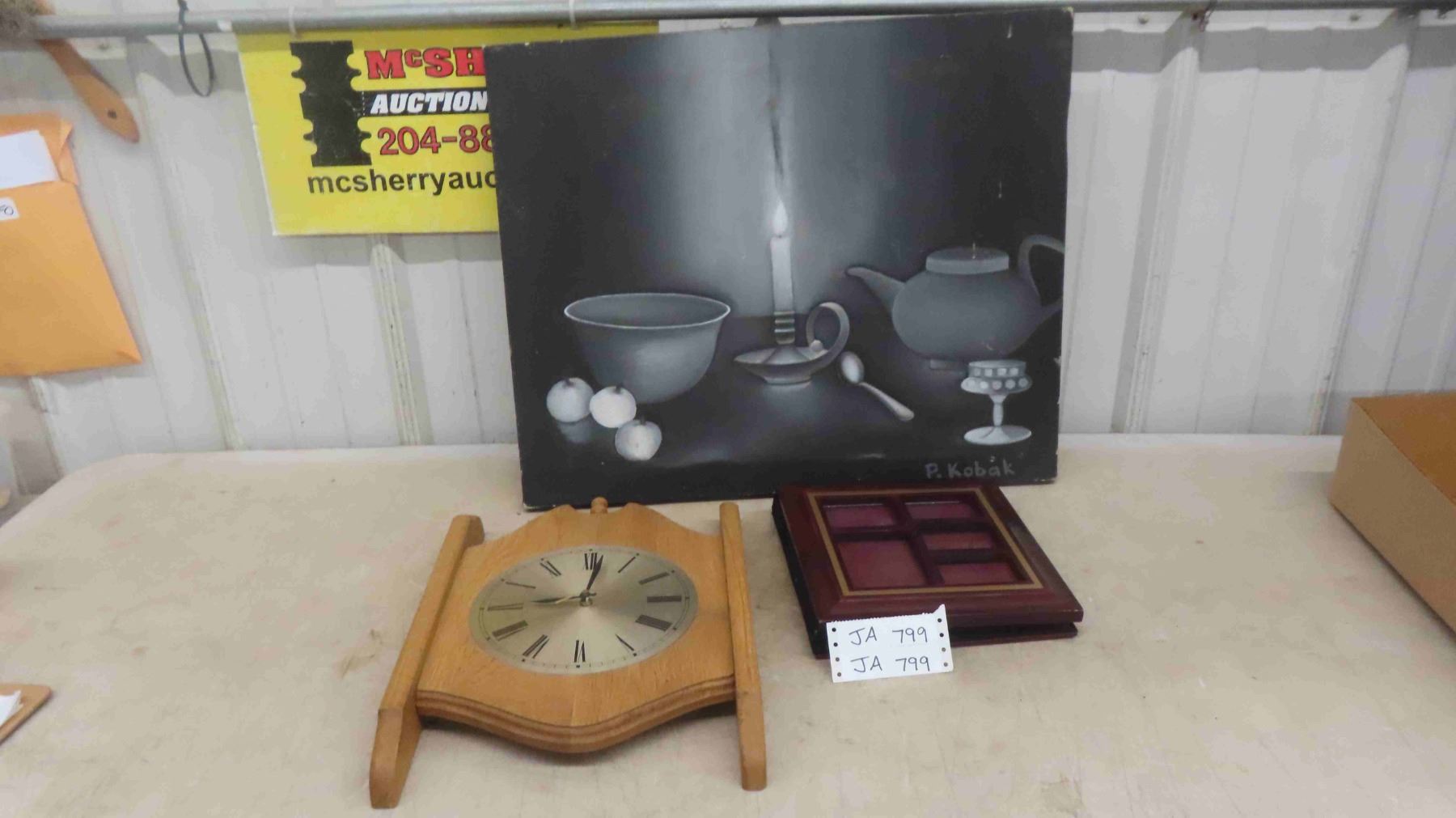 Wood Clock , Wood Photo Album , Black and White Painting on Canvas 24'' x 20''