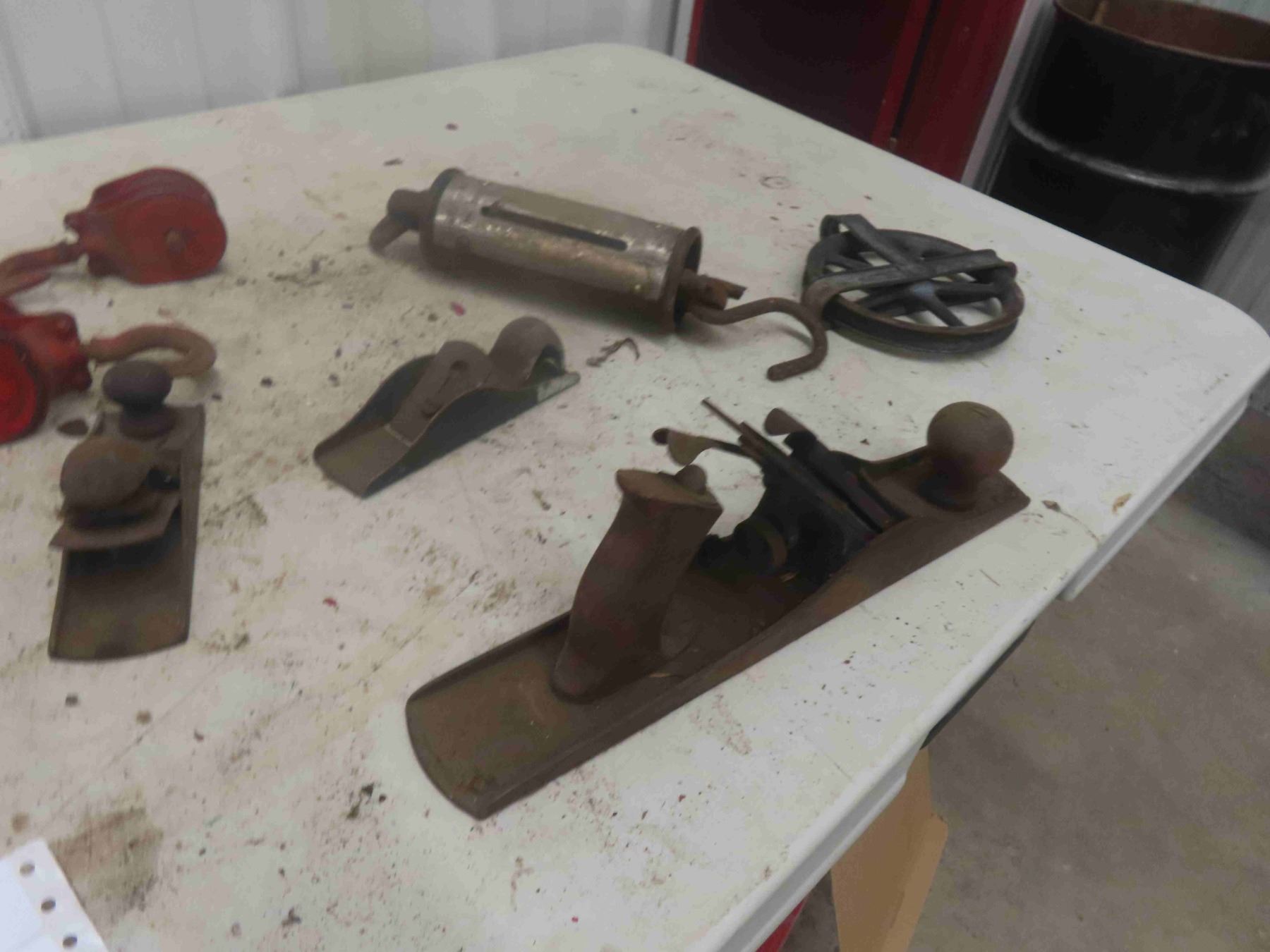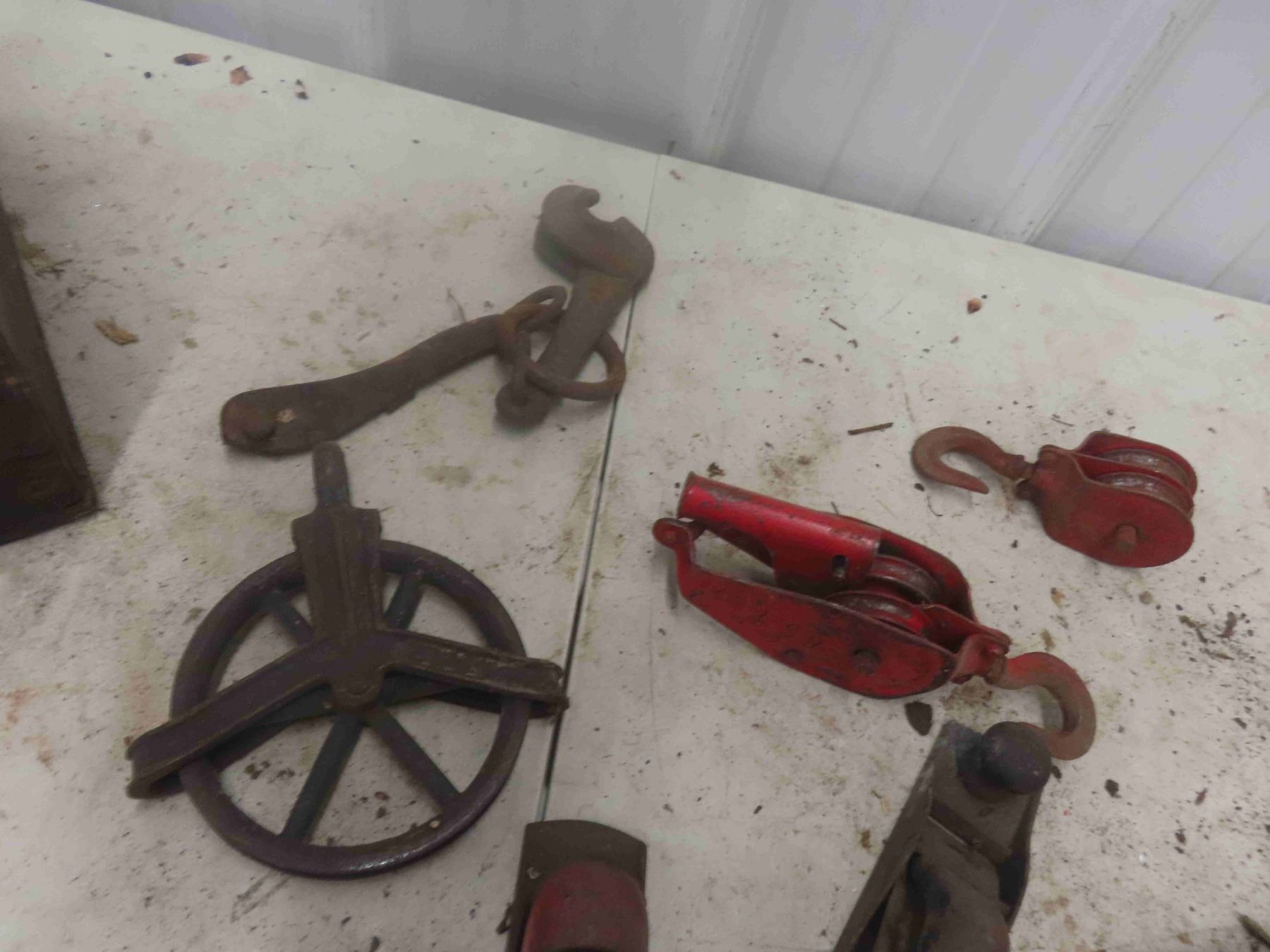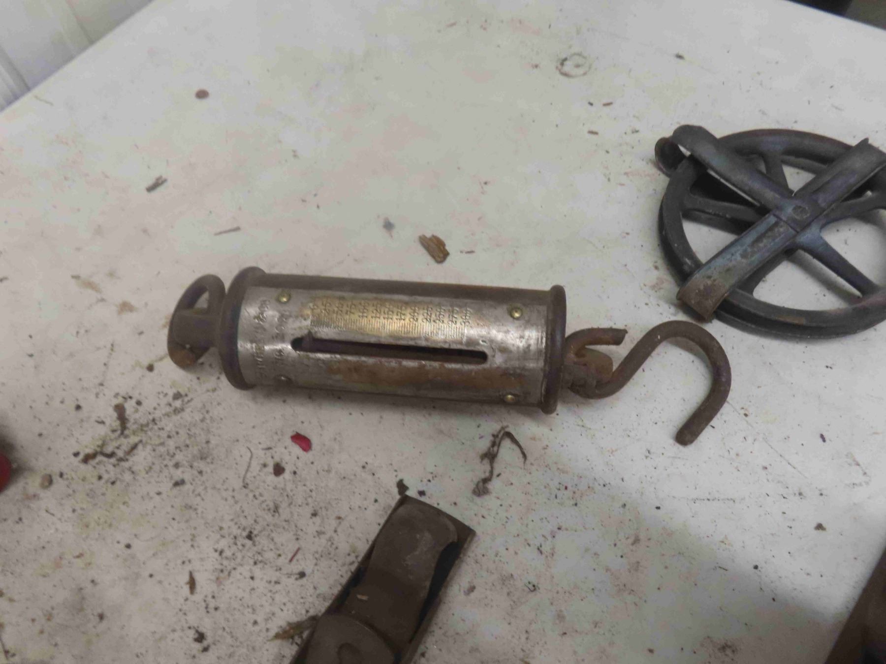 Wood Crate, Sargent 300lbs Hanging Scale, Pulleys, Wood Planers