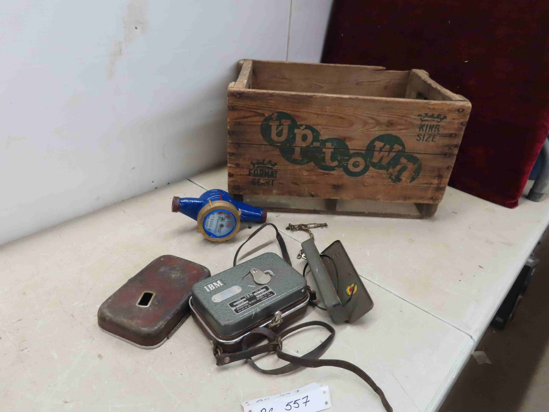 Wood Crate Up Town 18'' x 12'' x 11'' H , Water Meter, IBM Time Detector