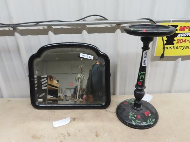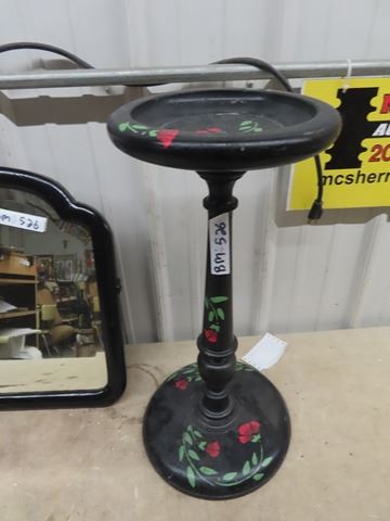Wood Framed Bevelled Mirror 23" x 19" & Painted Wooden Ashtray Stand