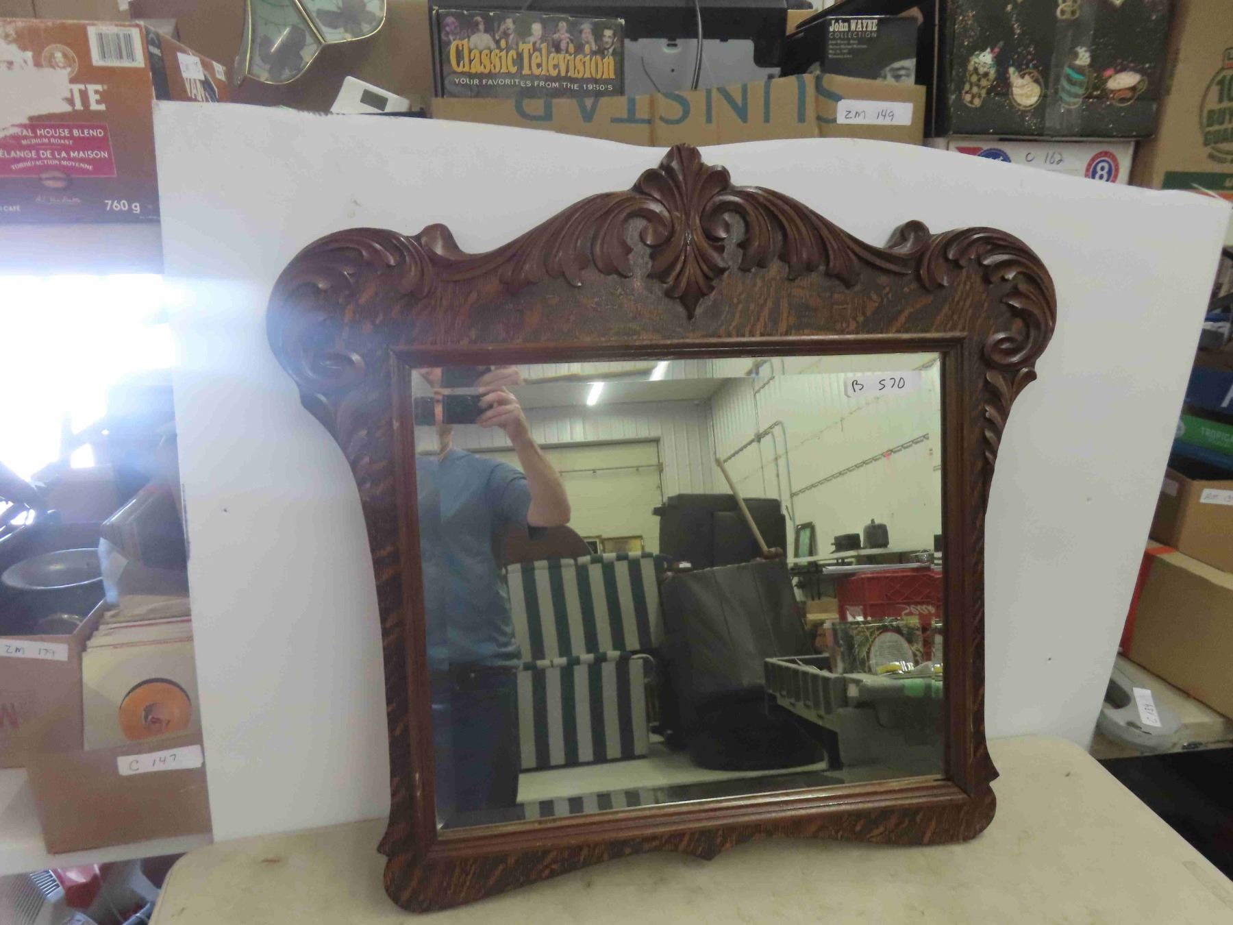 Wood Framed Bevelled Mirror Vintage 32" x 34"