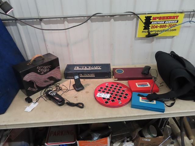 Wood Handled Container, Board Games, Massage Cushion, & Port Phone