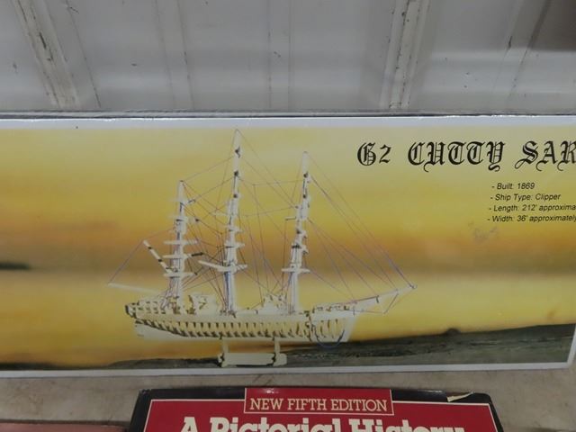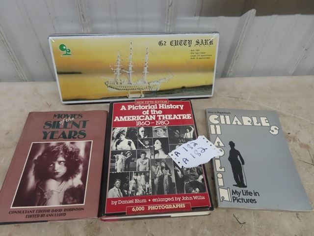 Wood Model Ship - Clipper + 3 Movie History Books including Charles Chaplin