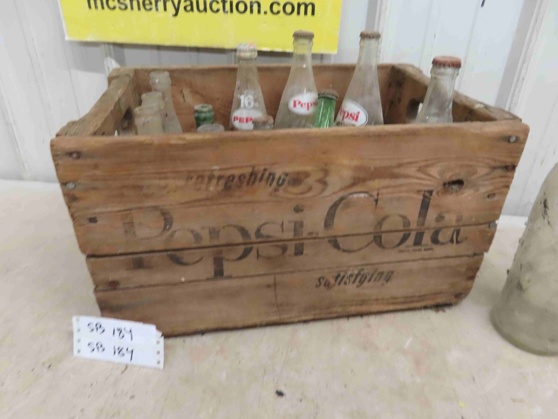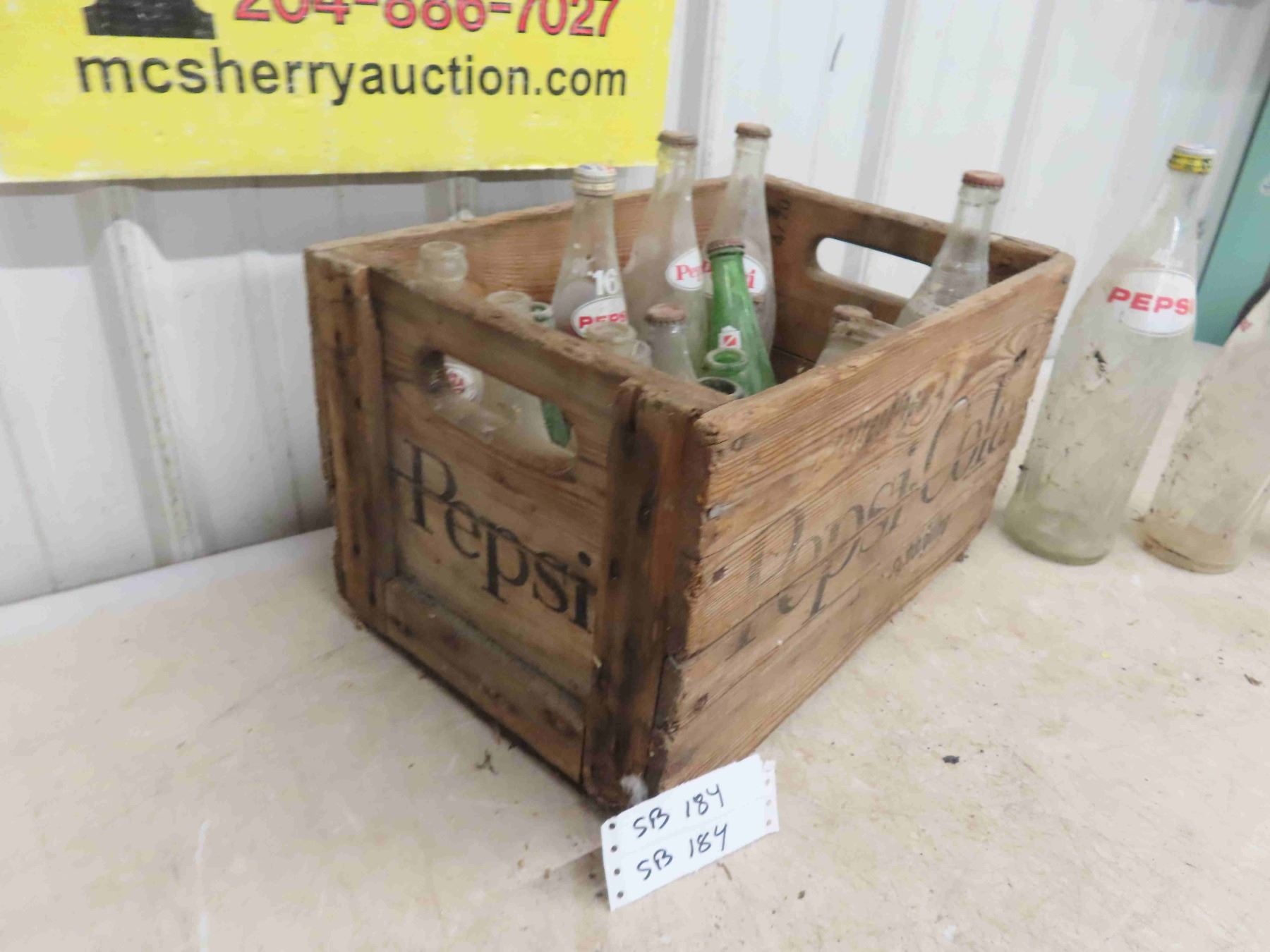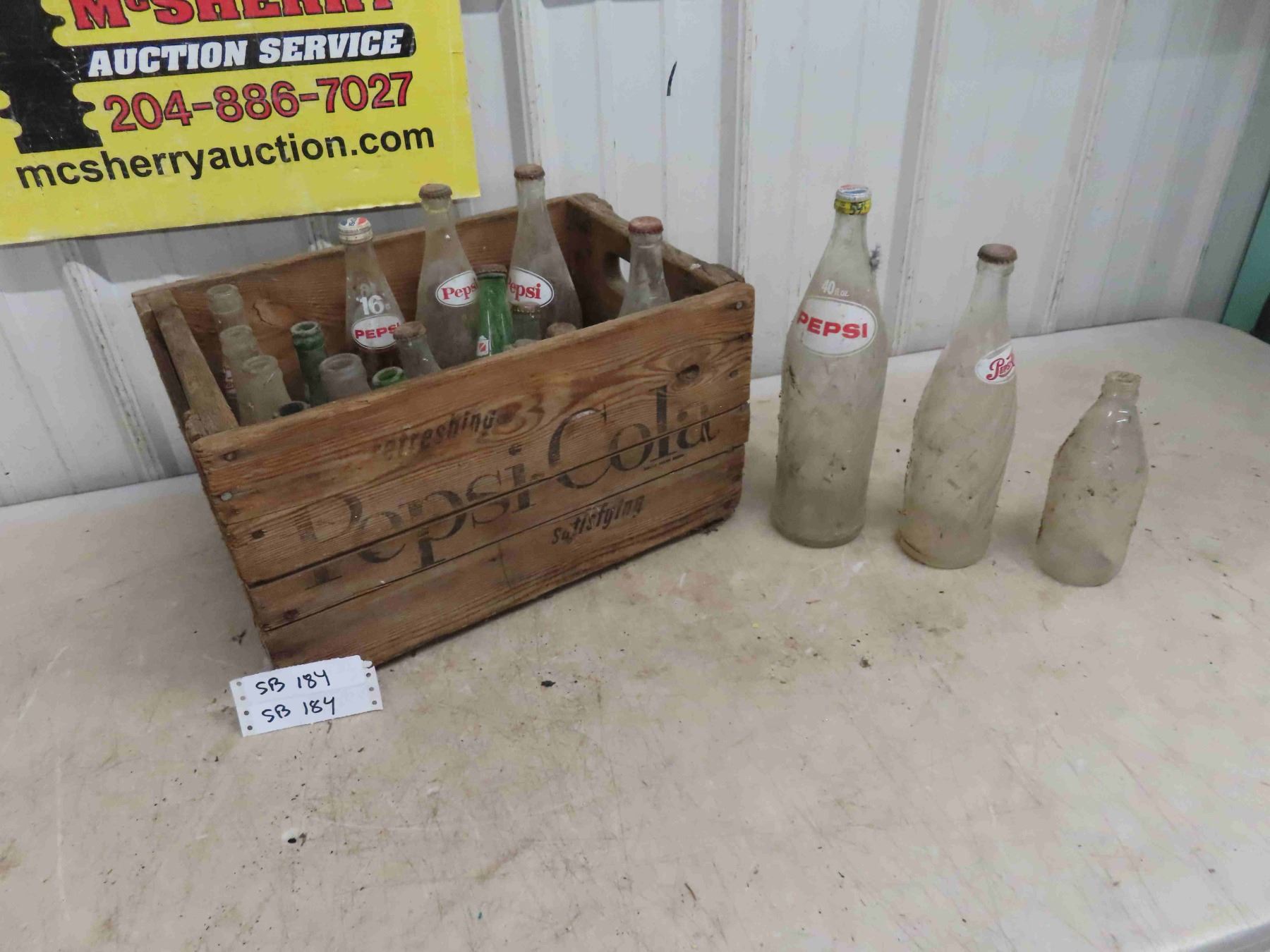 Wood Pepsi Cola Crate & 20 Bottles