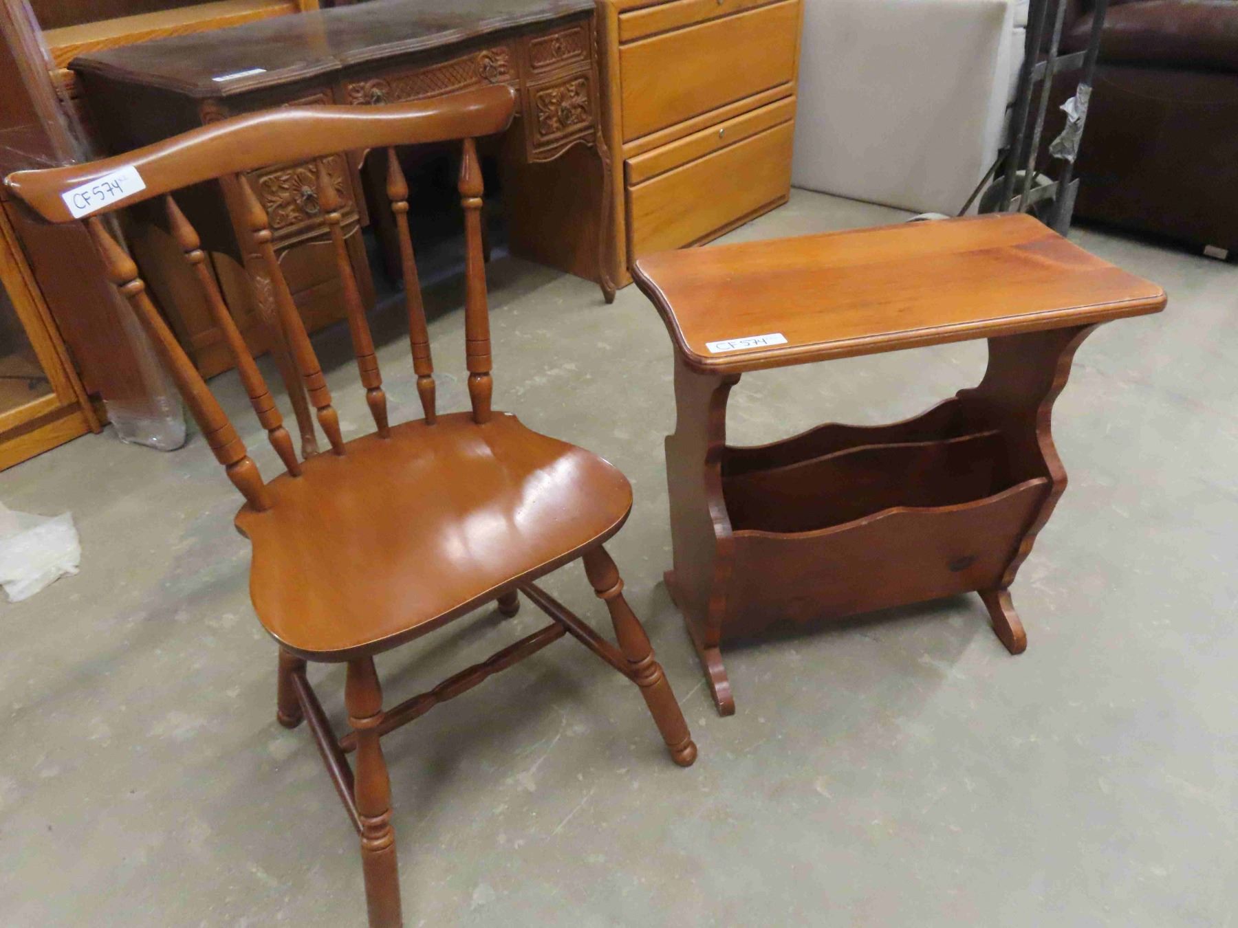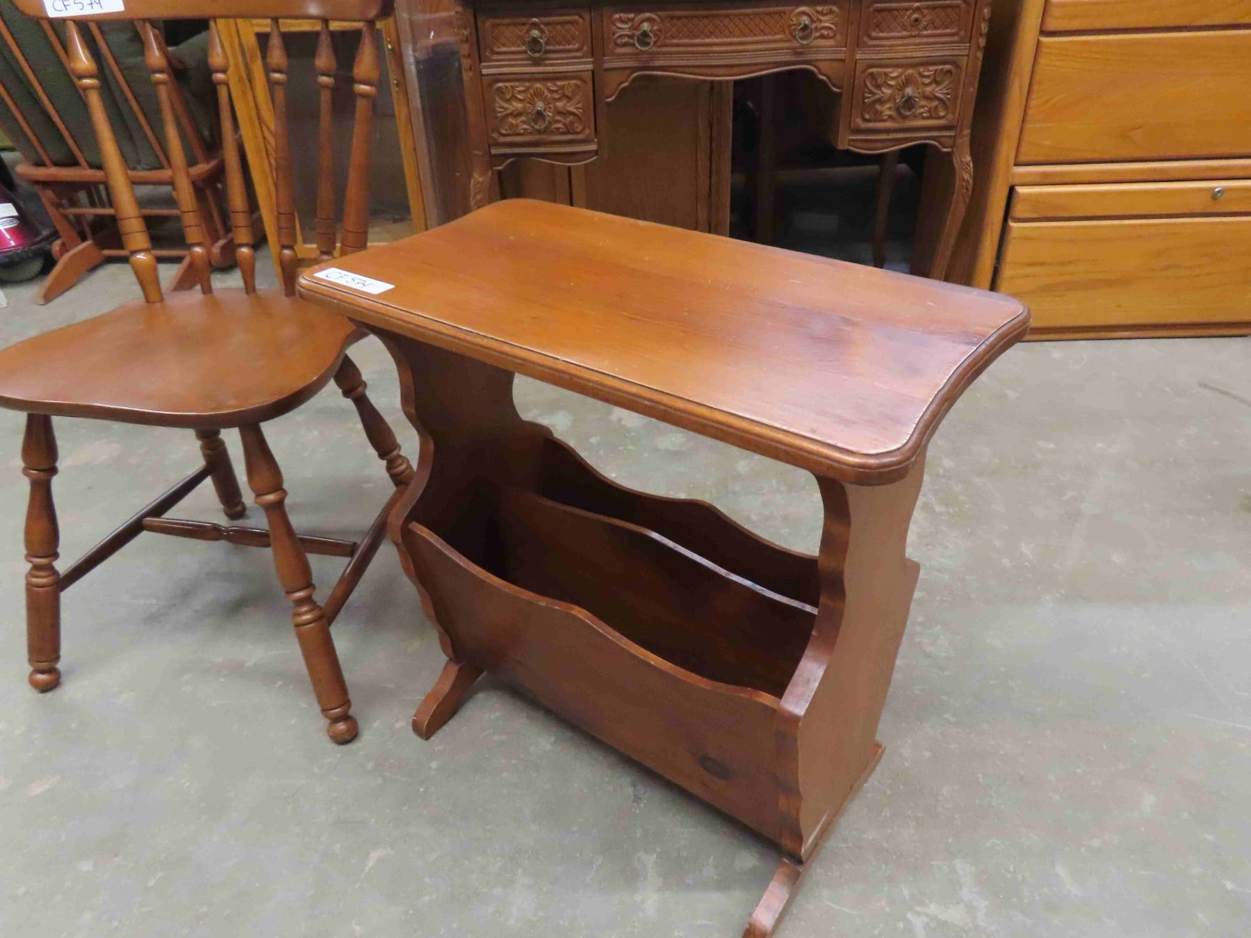 Wood Side Chair + Pine Magazine Stand/ Table 13" x 23.5" x 24"