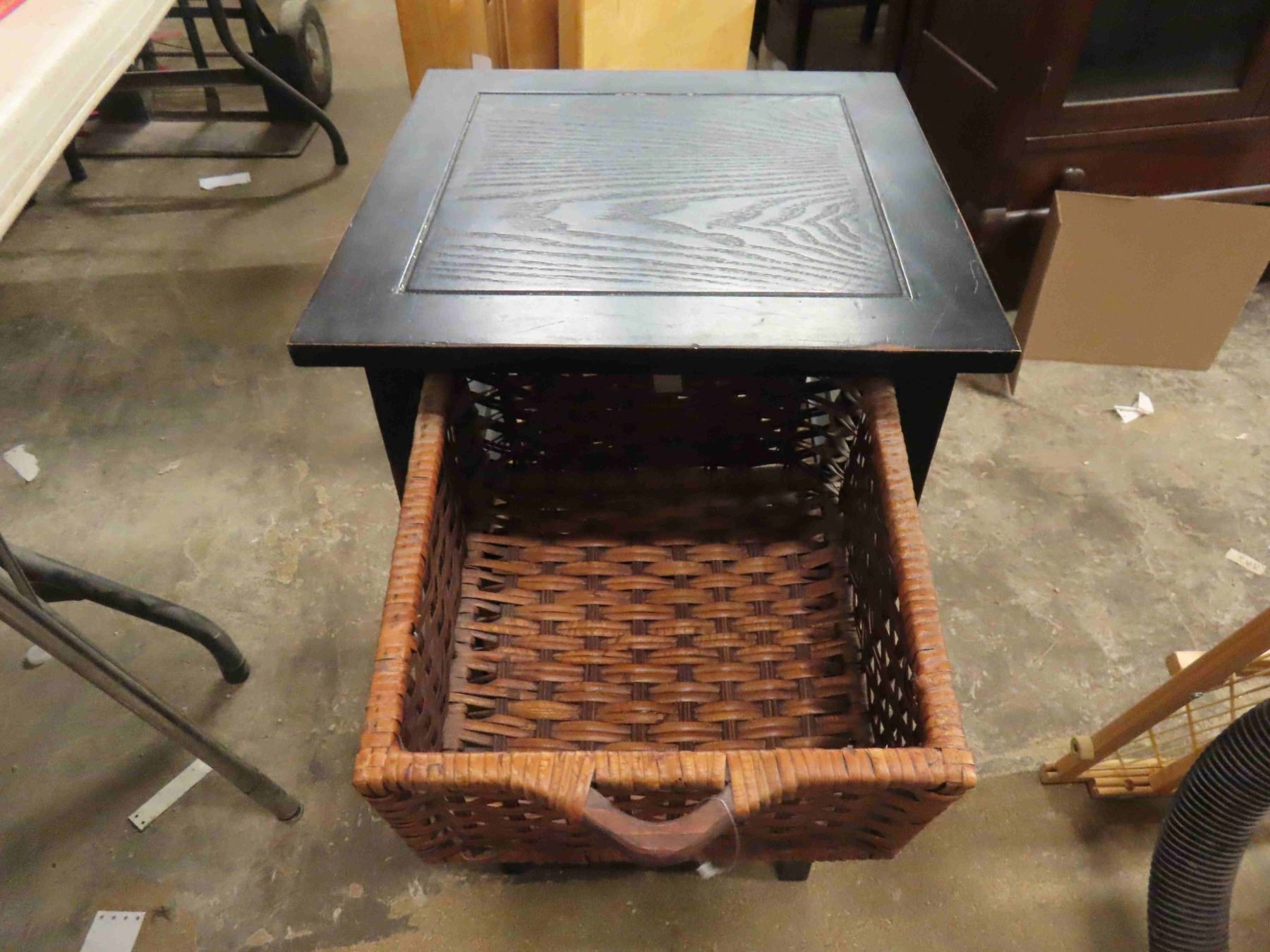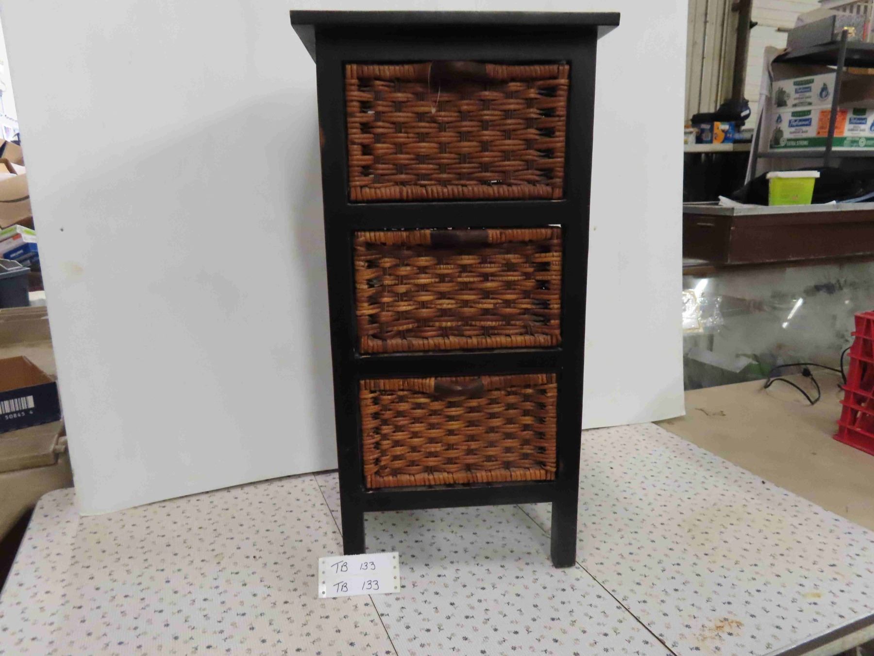 Wood Stand with 3 Wicker Drawers 11 1/2'' x 12 3/4'' x 28''