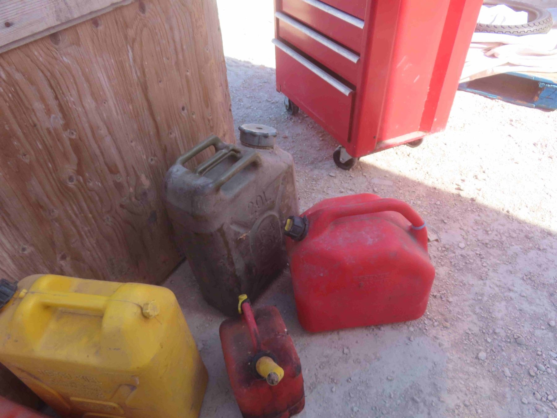 Wood Storage Box with Hinged Top Lid 48'' x 48'' x 16'' & 8 Gas Cans