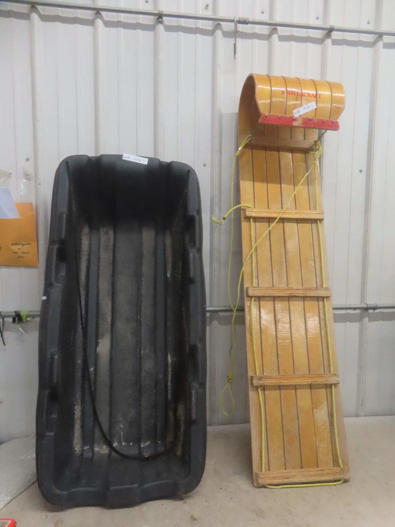 Wood Tobogan 60" Long, Plastic Sleigh 44" Long