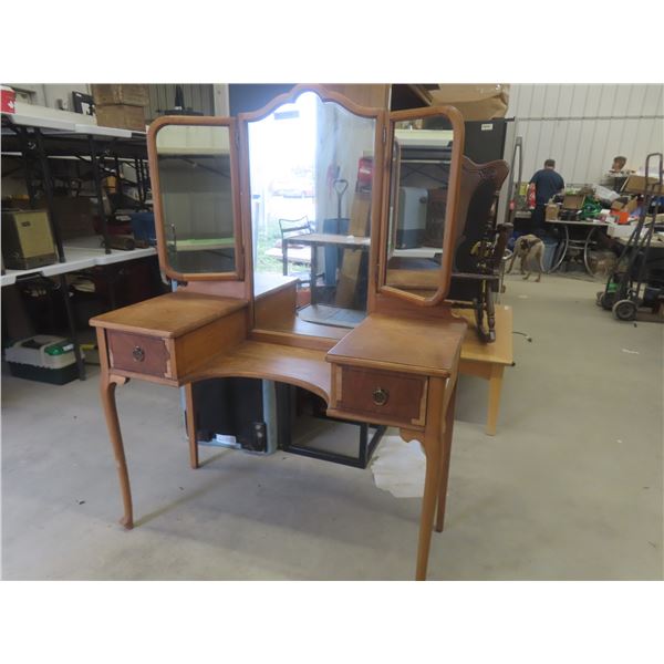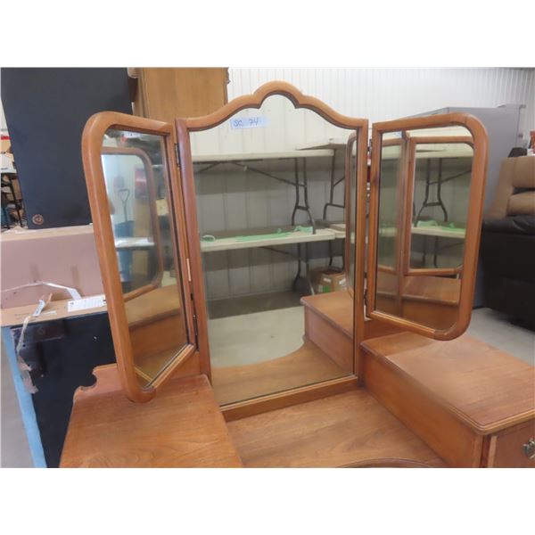 Wood Vanity Dressing Table with Tri Mirror + 2 Drawers 59"x18"x43" Laminate Pieces In Drawer ... Show more..