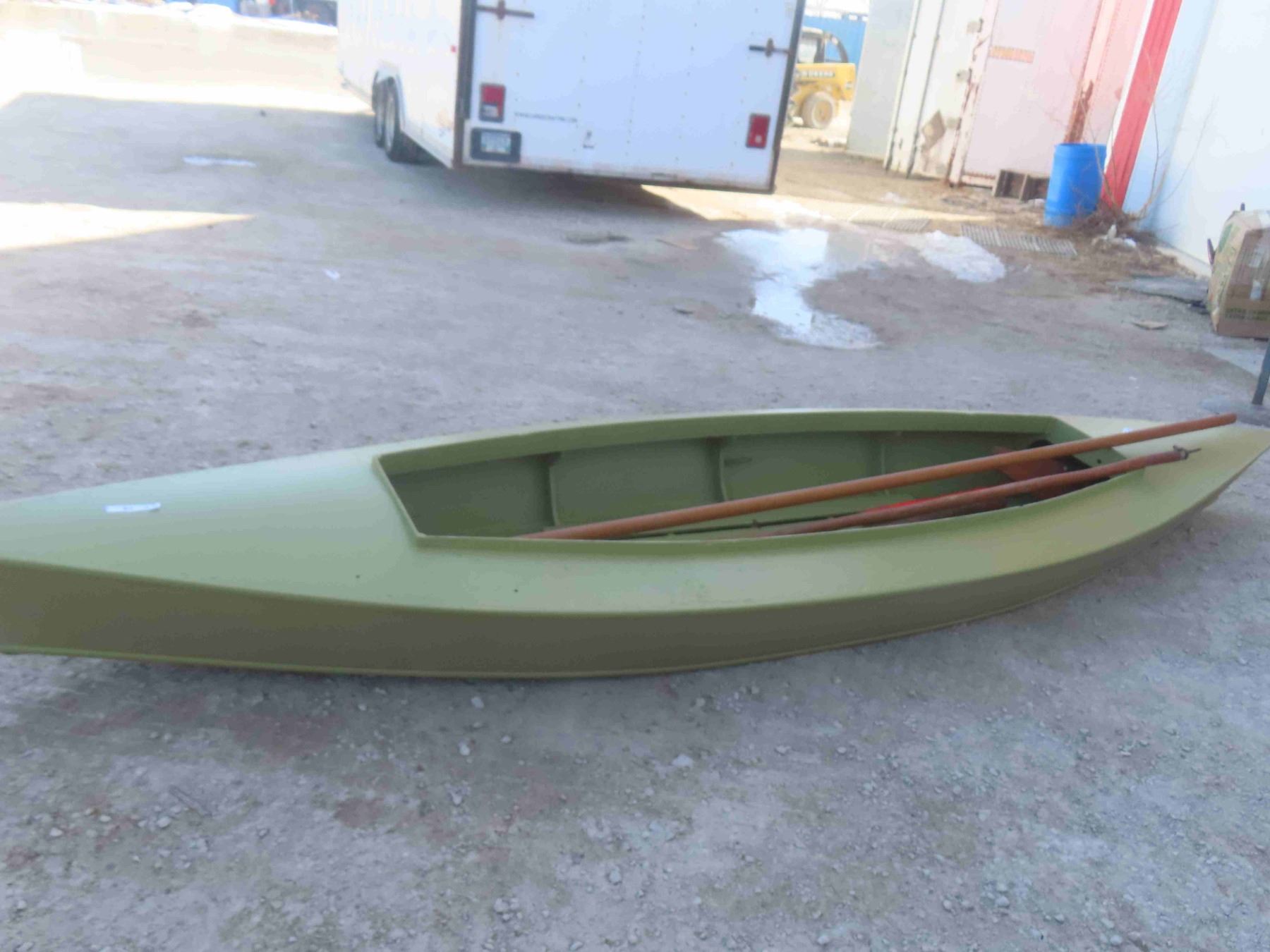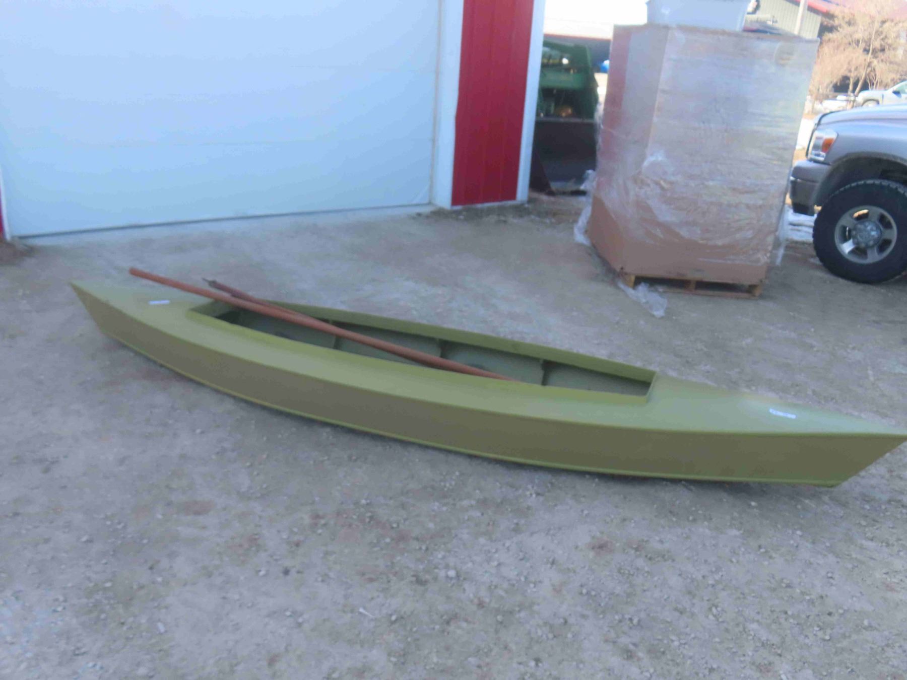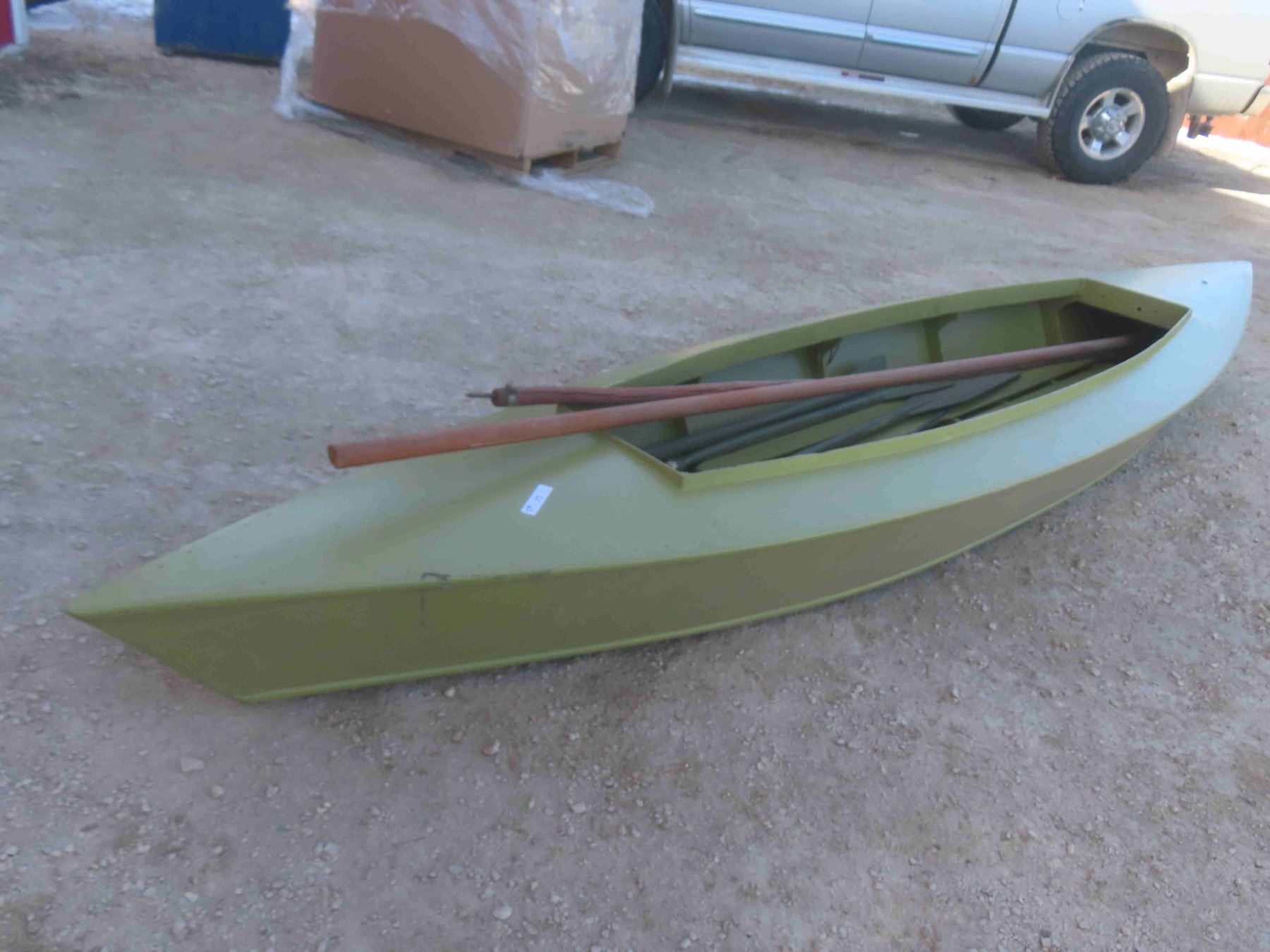 Wooden 13ft Flat Bottom Duck Boat with Paddles & Muskrat Hut Pokers Stored In Side