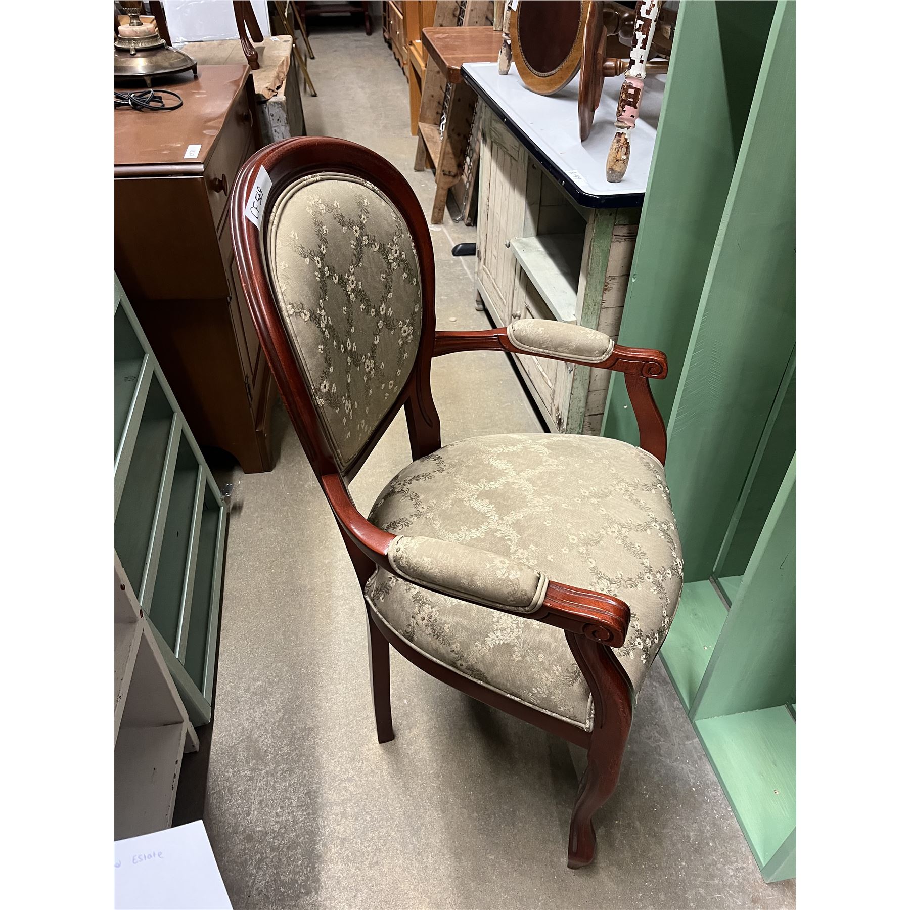 Wooden Arm Chair with Upholstered Back, Seat + Arms
