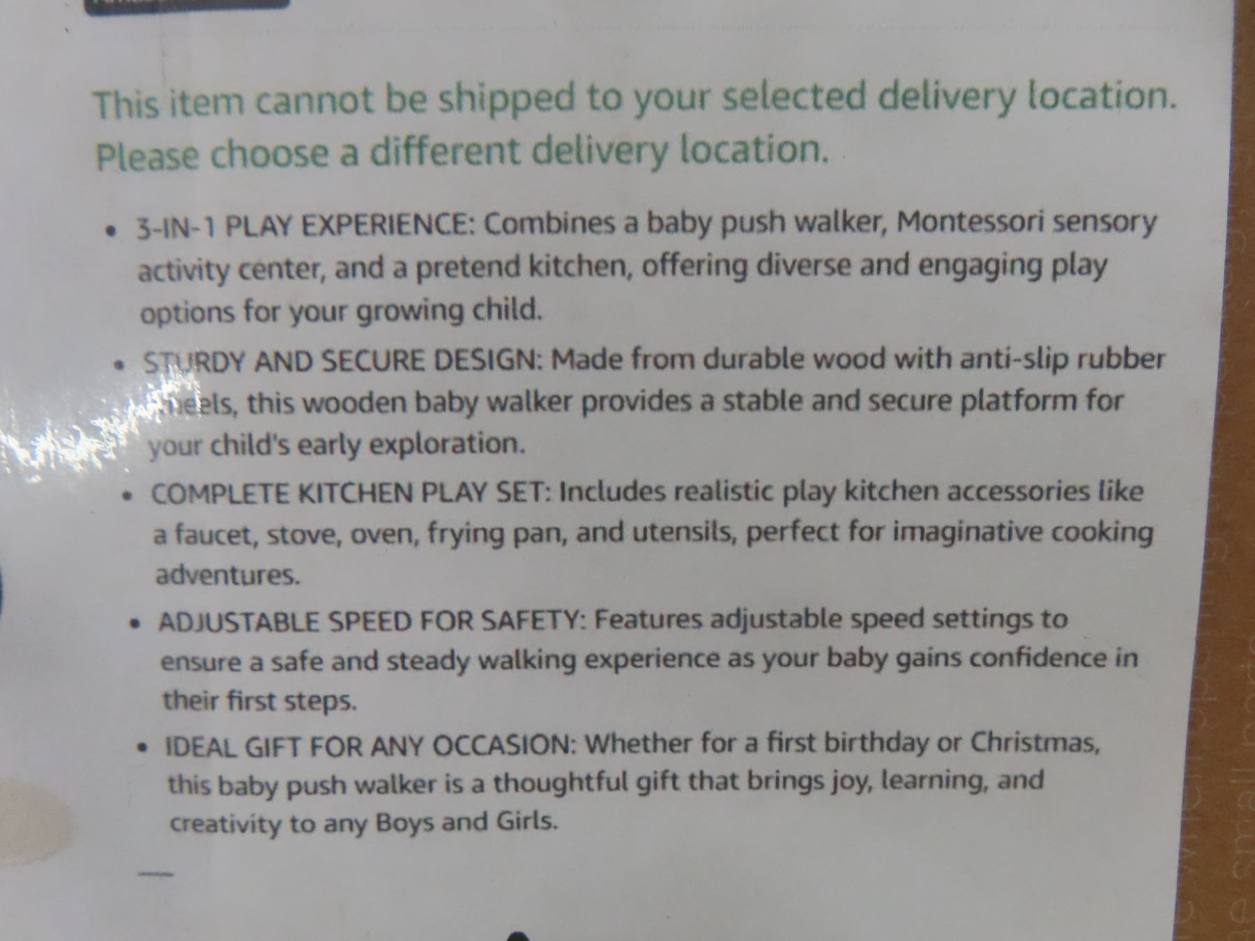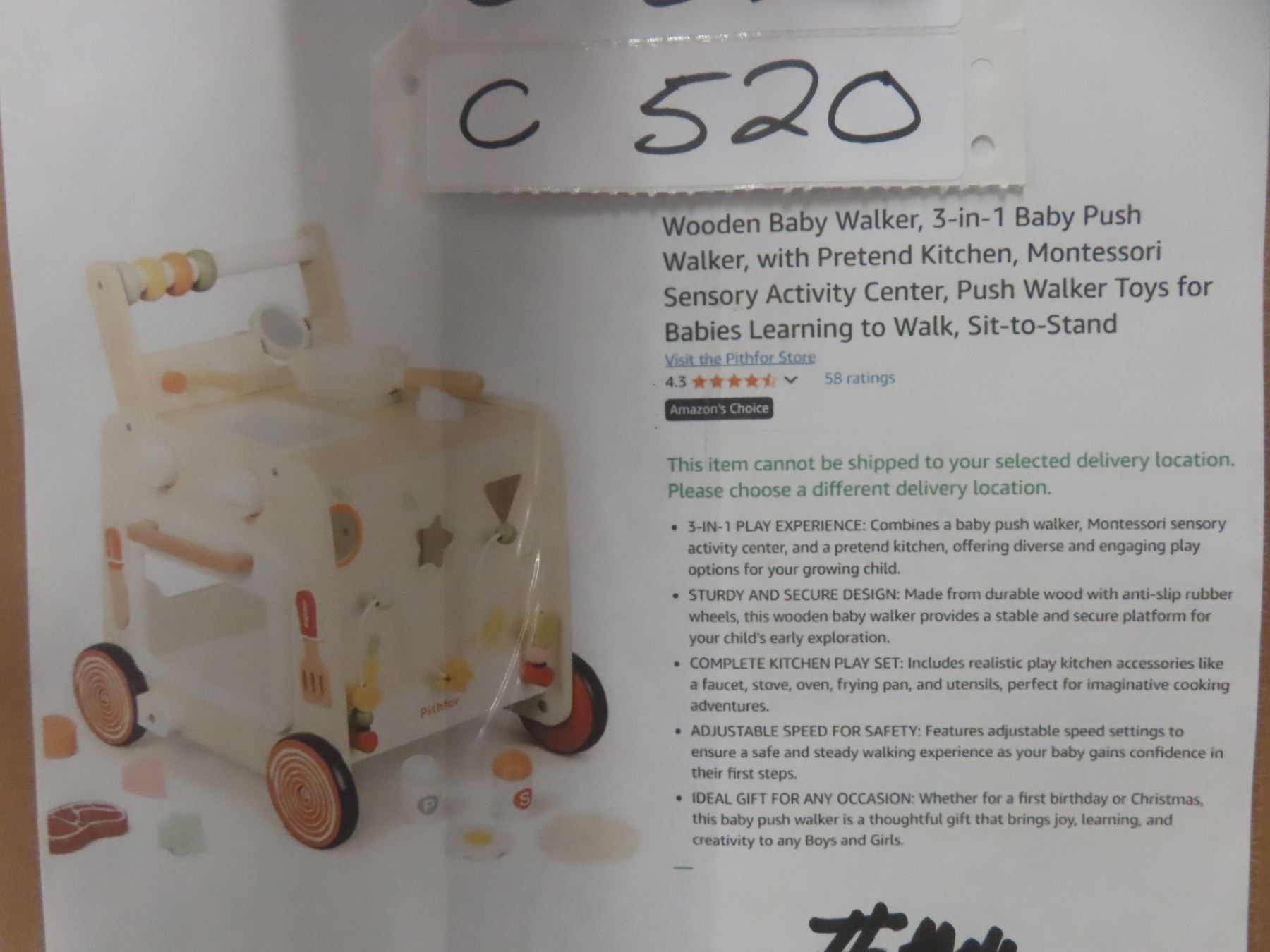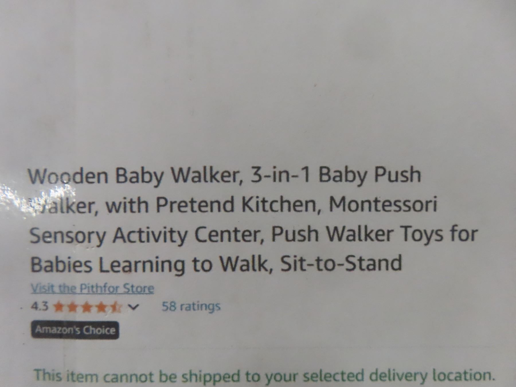 Wooden Baby Walker, 3-in-1 Baby Push Walker with Pretend Kitchen, Montessori Sensory Activity Center, Push Walker Toys for Babies Learning to Walt, Sit-to-Stand
