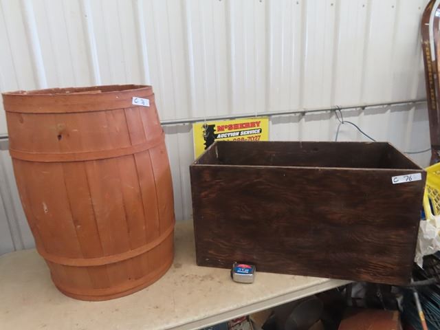 Wooden Barrel 30"H 20"RD & Wood Crate 18"H 30"W 18"D