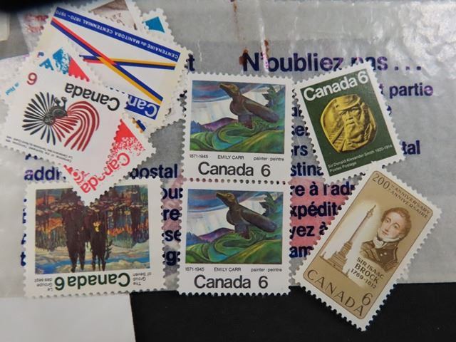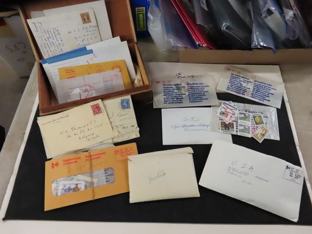 Wooden Box with Assorted Canada + World Stamps - some Uncirculated, Many Cancelled - Great Starter Pack
