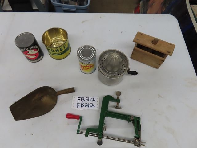 Wooden Butter Press, Aluminum Hand Crank Juicer, Honey Tin, Apple Peeler, Metal Scoop