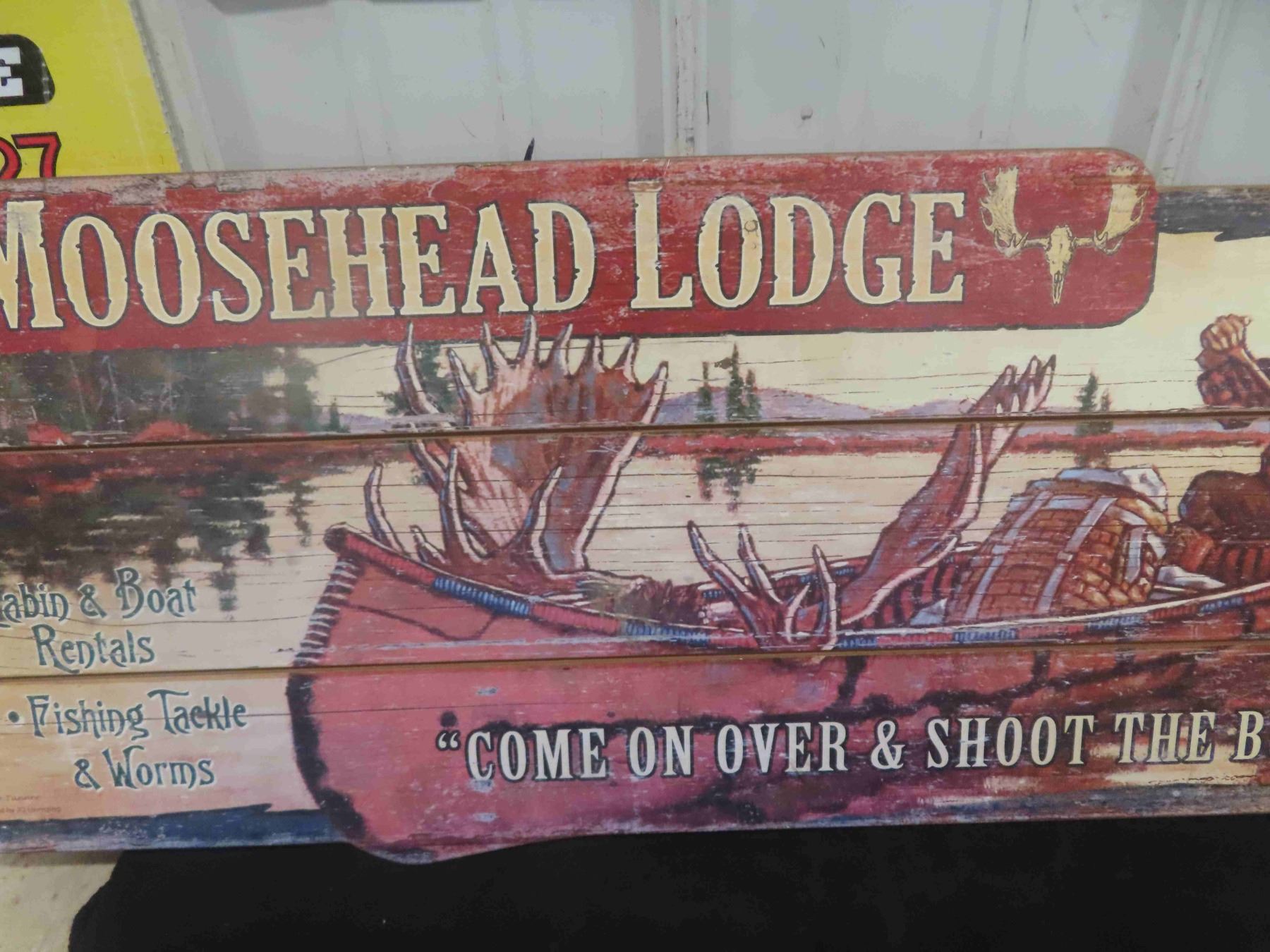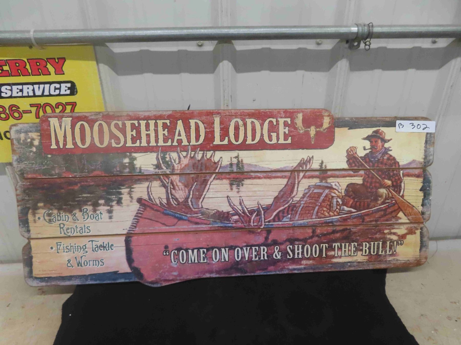 Wooden Cabin Sign Moosehead Lodge 14" x 34"