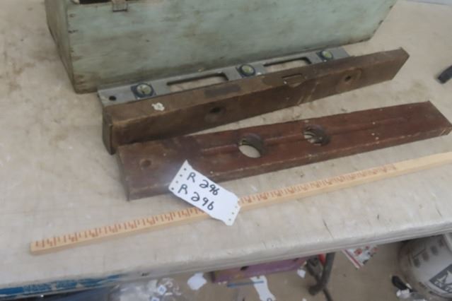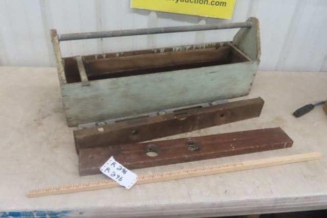 Wooden Carpenter's Tool Box , Levels, Yard Stick