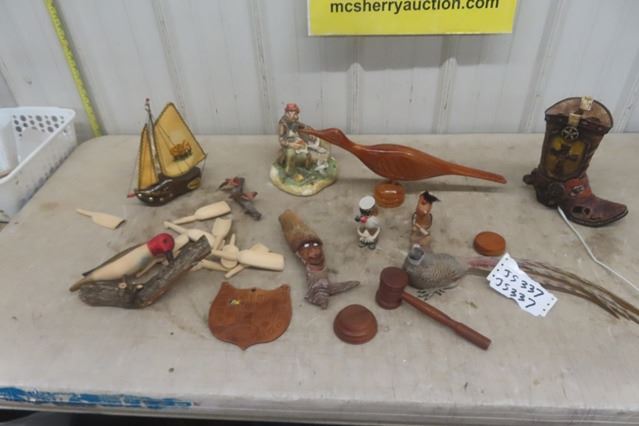 Wooden Carved Ornaments, Lamp, Chalkware Ornament