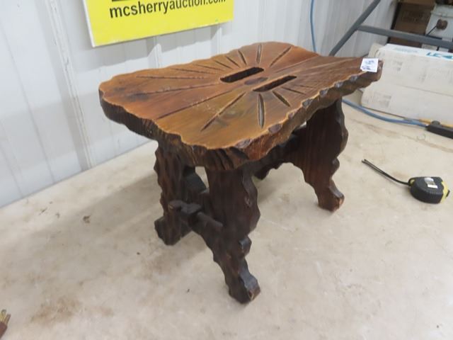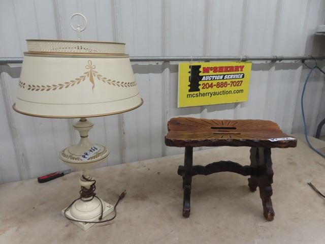 Wooden Carved Stool/Stepper & Vintage Table Lamp