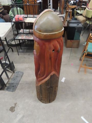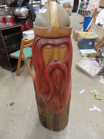 Wooden Carved Viking - 4' Tall Approx 12" Rd