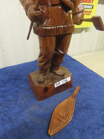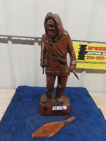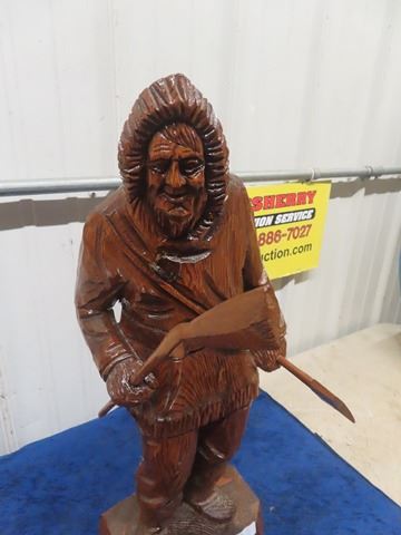 Wooden Carving of a Coureur de Bois Hunter, Signed by 'George'. Written on the Bottom 'Hunter' 23.5" Tall