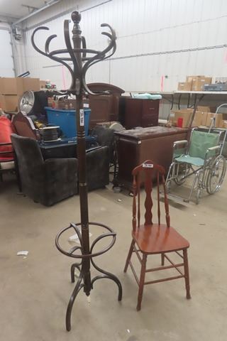 Wooden Chair +Wooden Coat Rack 73" Tall
