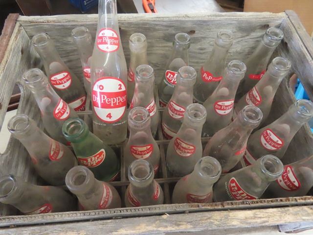Wooden Crate with 24 Pop Bottles - most Dr. Pepper