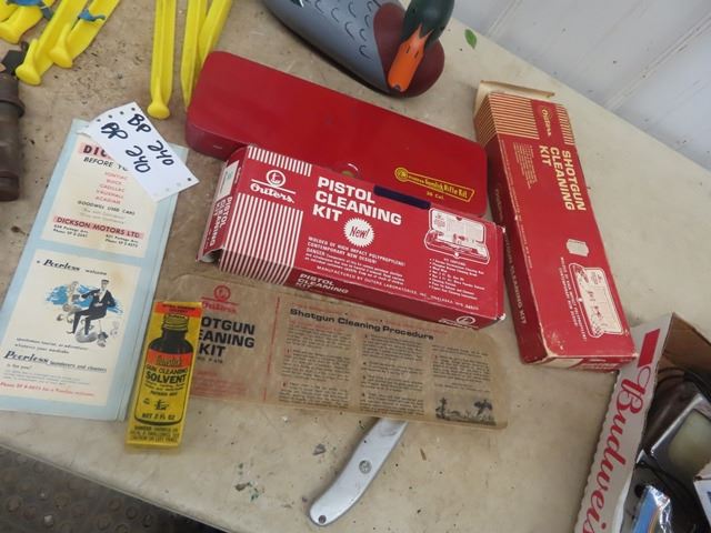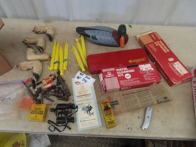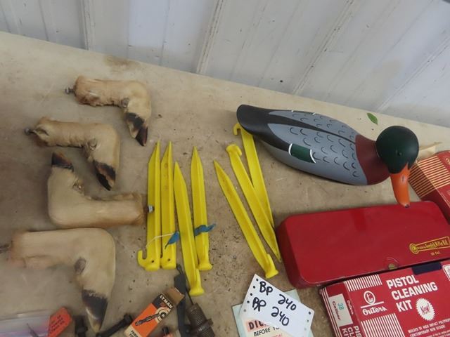 Wooden Duck Decoy, Gun Cleaning, Reloading Binoculars, Deer Foot Hangers (Can you say Redneck??)