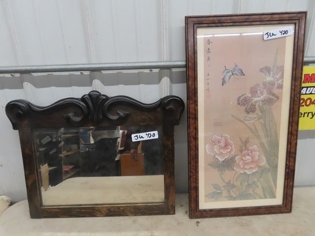 Wooden Framed Bevelled Mirror 22"x 17" & Picture 14" x 26"