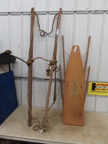 Wooden Ironing Board/ Wood & Rope ?? SLing?? Pulley Device??