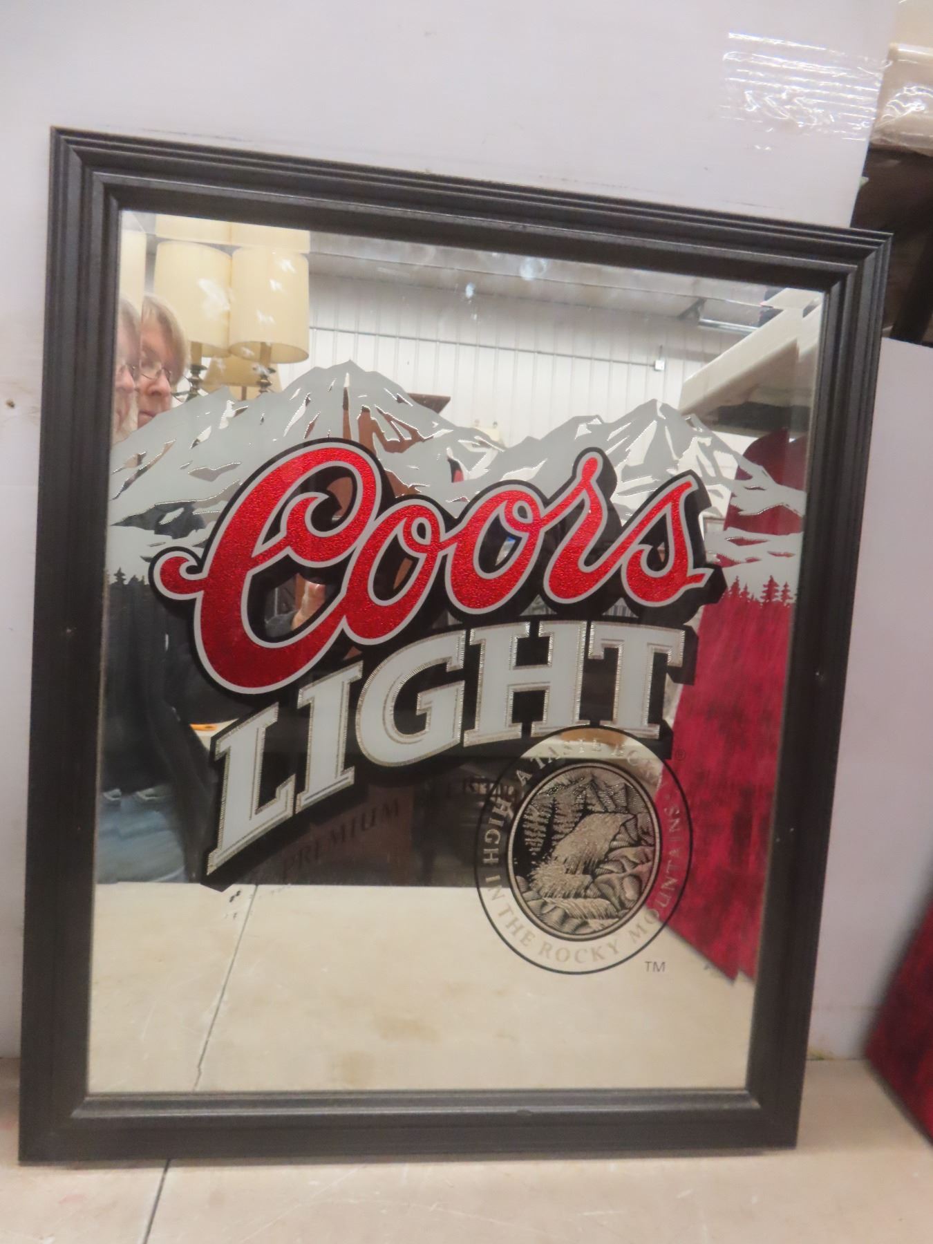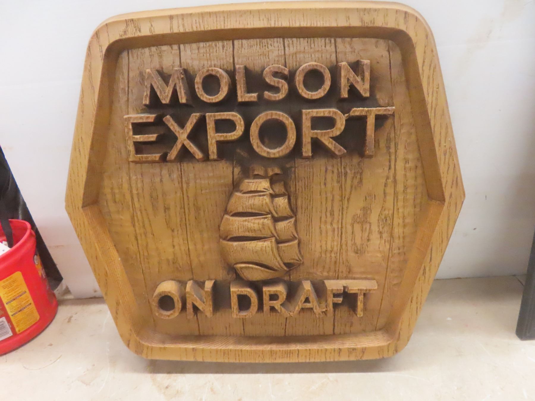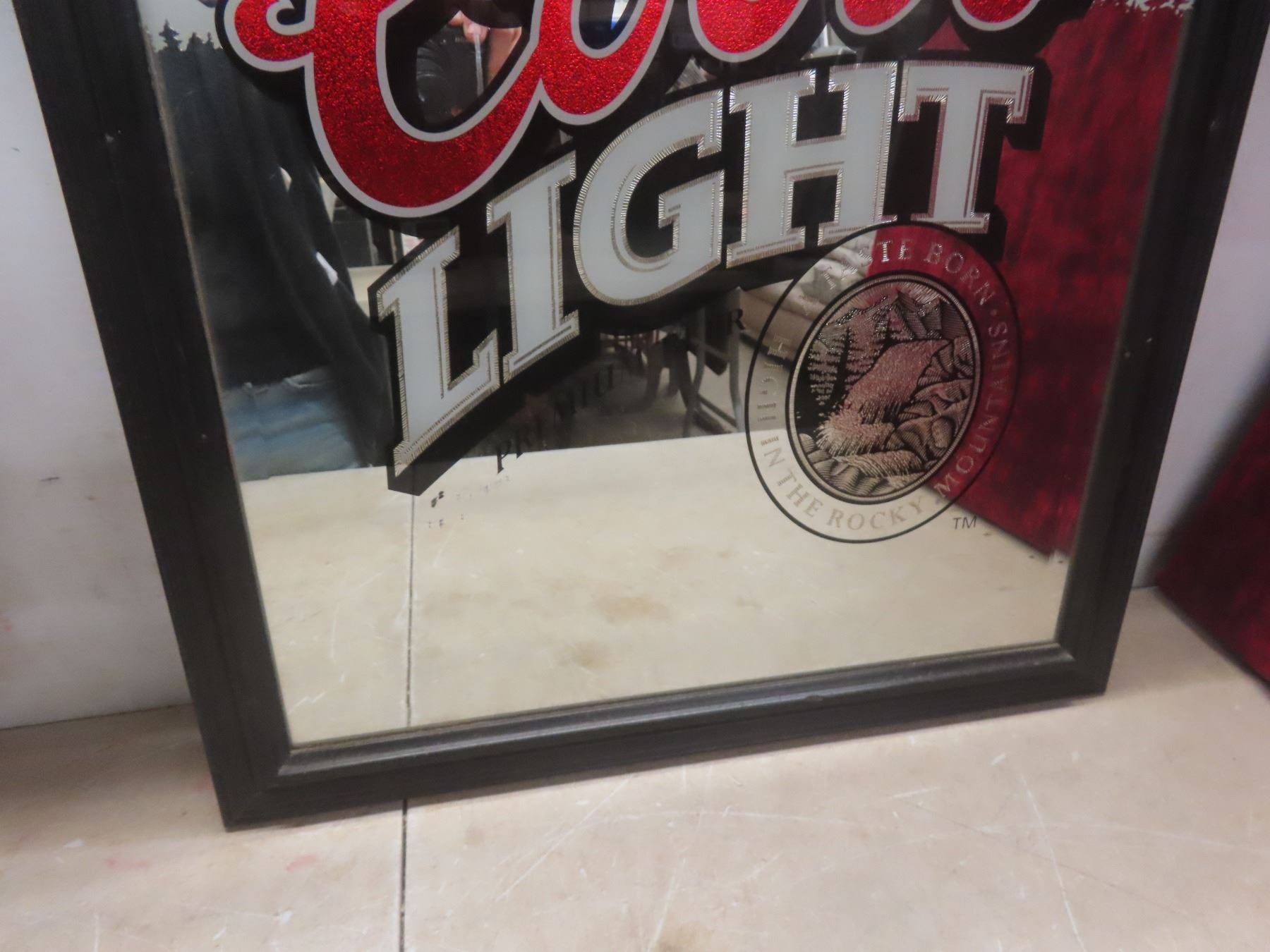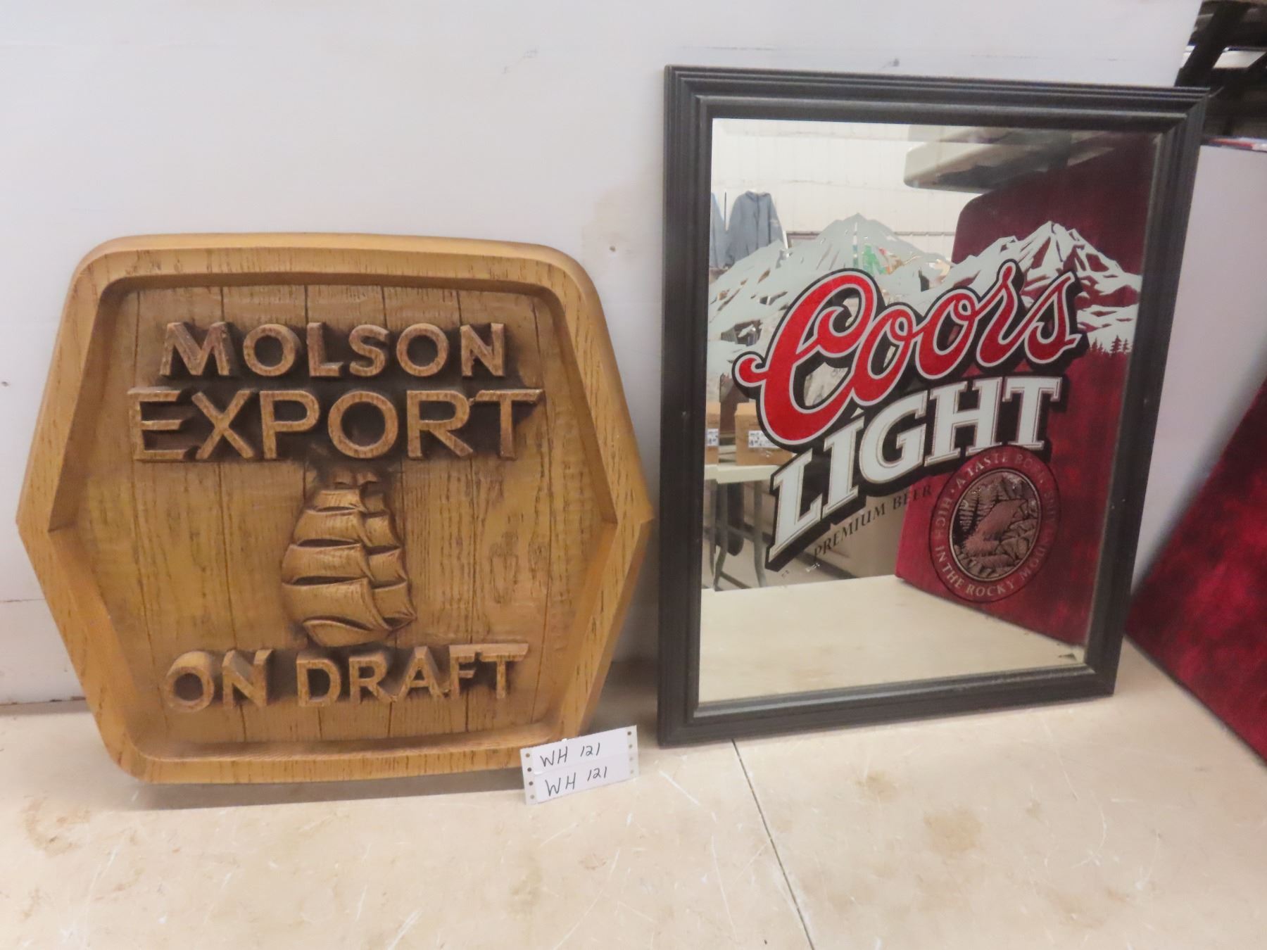 Wooden Molson Export Beer Sign and Coors Light Mirror Sign