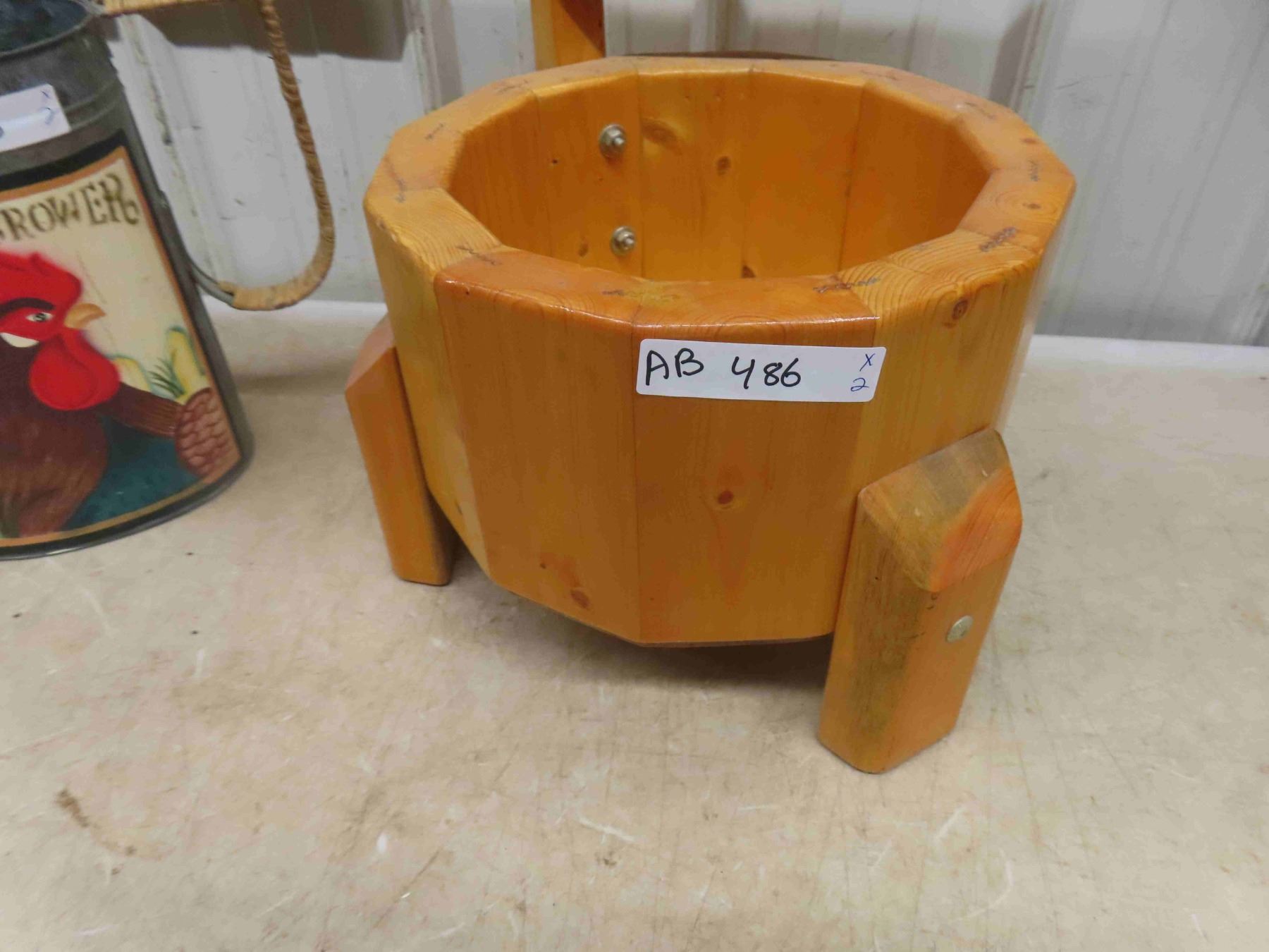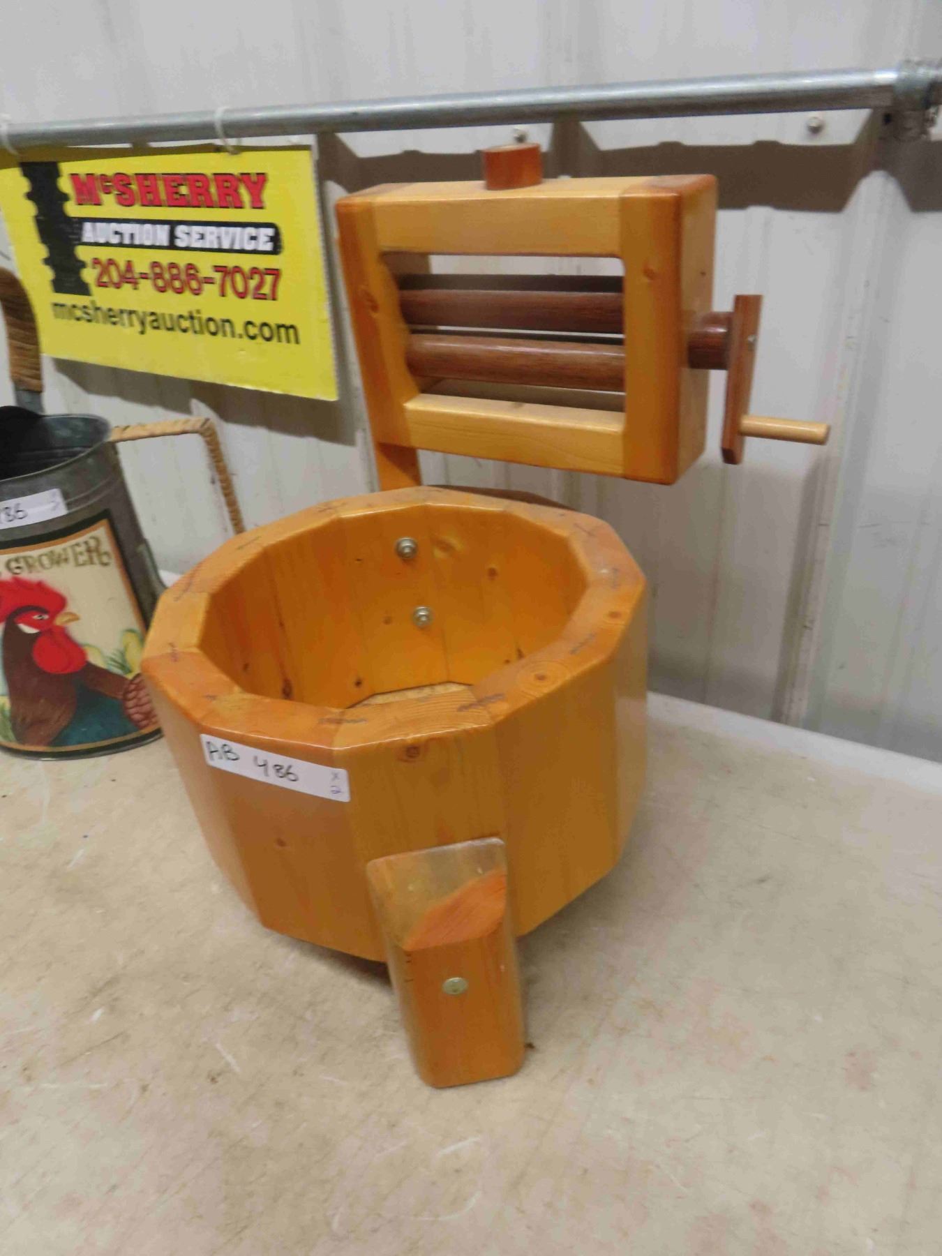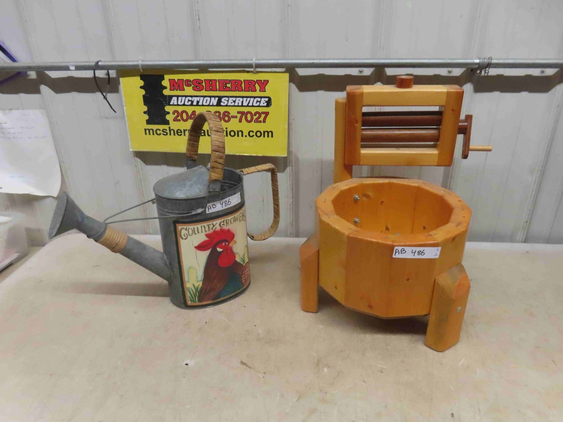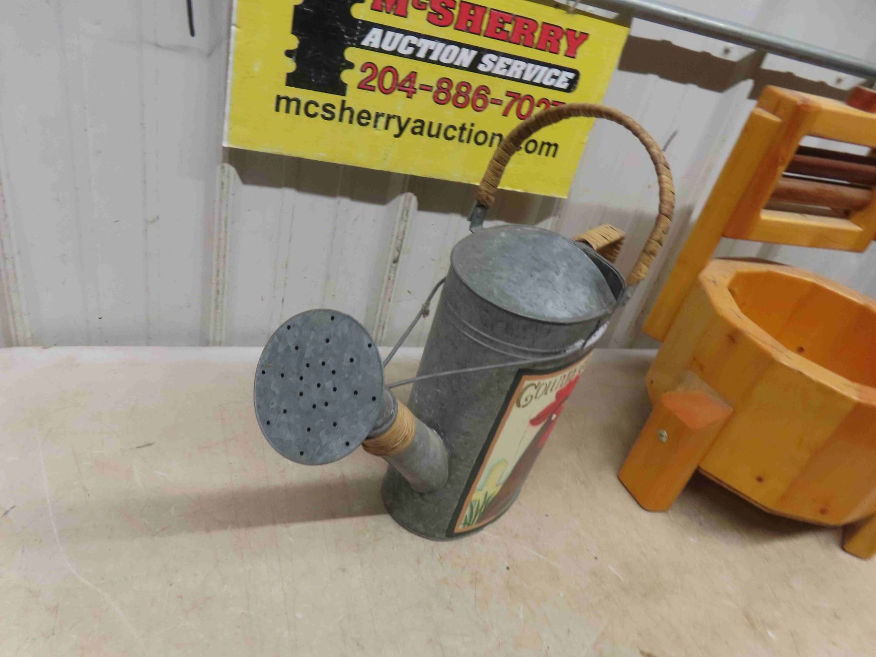 Wooden Planter, Wringer/ Washer + Galvanized Watering Pail